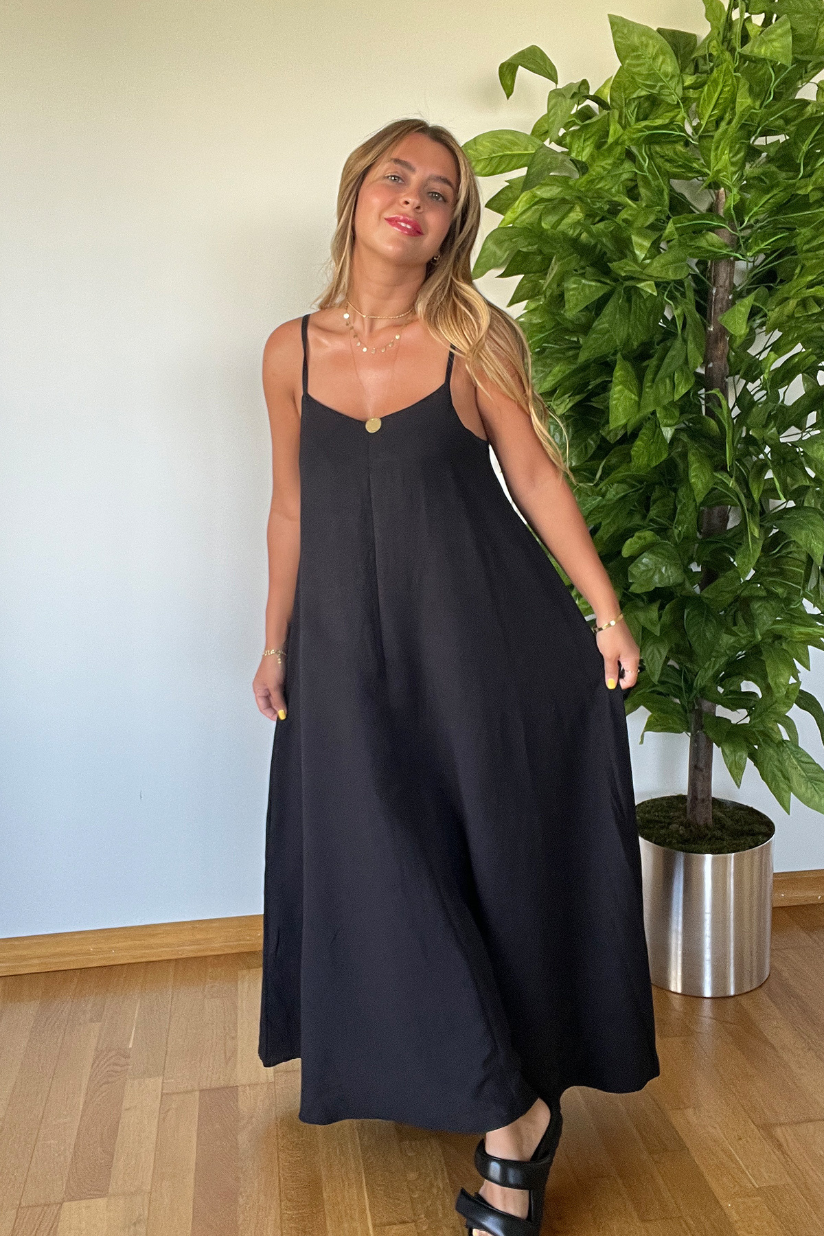 2025 Yeni Sezon Siyah Askılı Bol Kesim Yazlık Günlük Şık Uzun Elbise Rahat Düz Model Minimal Tarz 2025 Yeni Sezon Siyah Askılı Bol Kesim Yazlık Günlük Şık Uzun Elbise Rahat Düz Model Minimal Tarz Hafif Kumaş Hamile Relax Tiril Kıyafet L