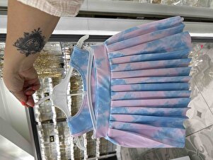 Kız Çocuk Pamuklu Pembe Mavi Bulut Desenli Sporcu Etekli Takım - Crop Üst ve Pileli Etek Kız Çocuk Pamuklu Pembe Mavi Bulut Desenli Sporcu Etekli Takım - Crop Üst ve Pileli Etek Mg25Summer151 15-16 Yaş