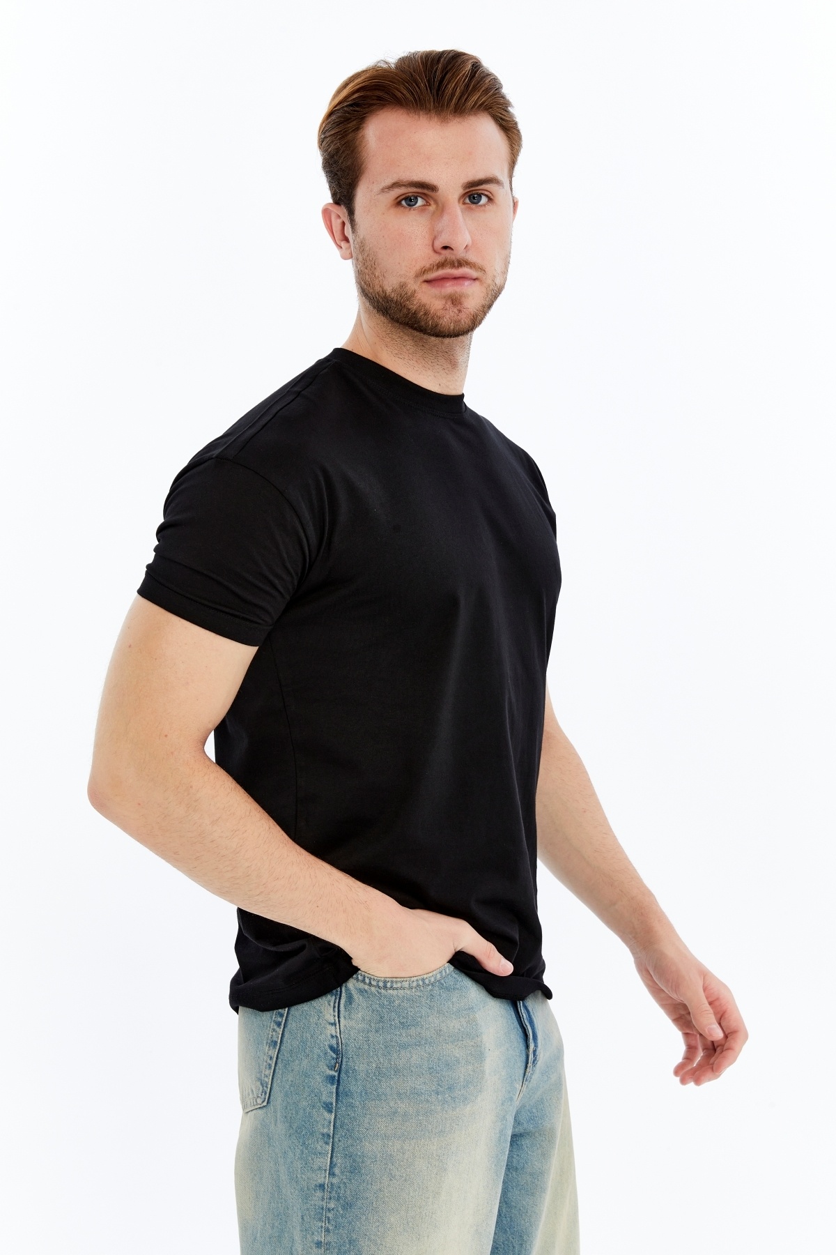 Erkek Siyah Tişört Kolları Dar Ve Omuzları Fit Regular Kesim T-shirt Erkek Siyah Tişört Kolları Dar Ve Omuzları Fit Regular Kesim T-shirt WHT-302 XL