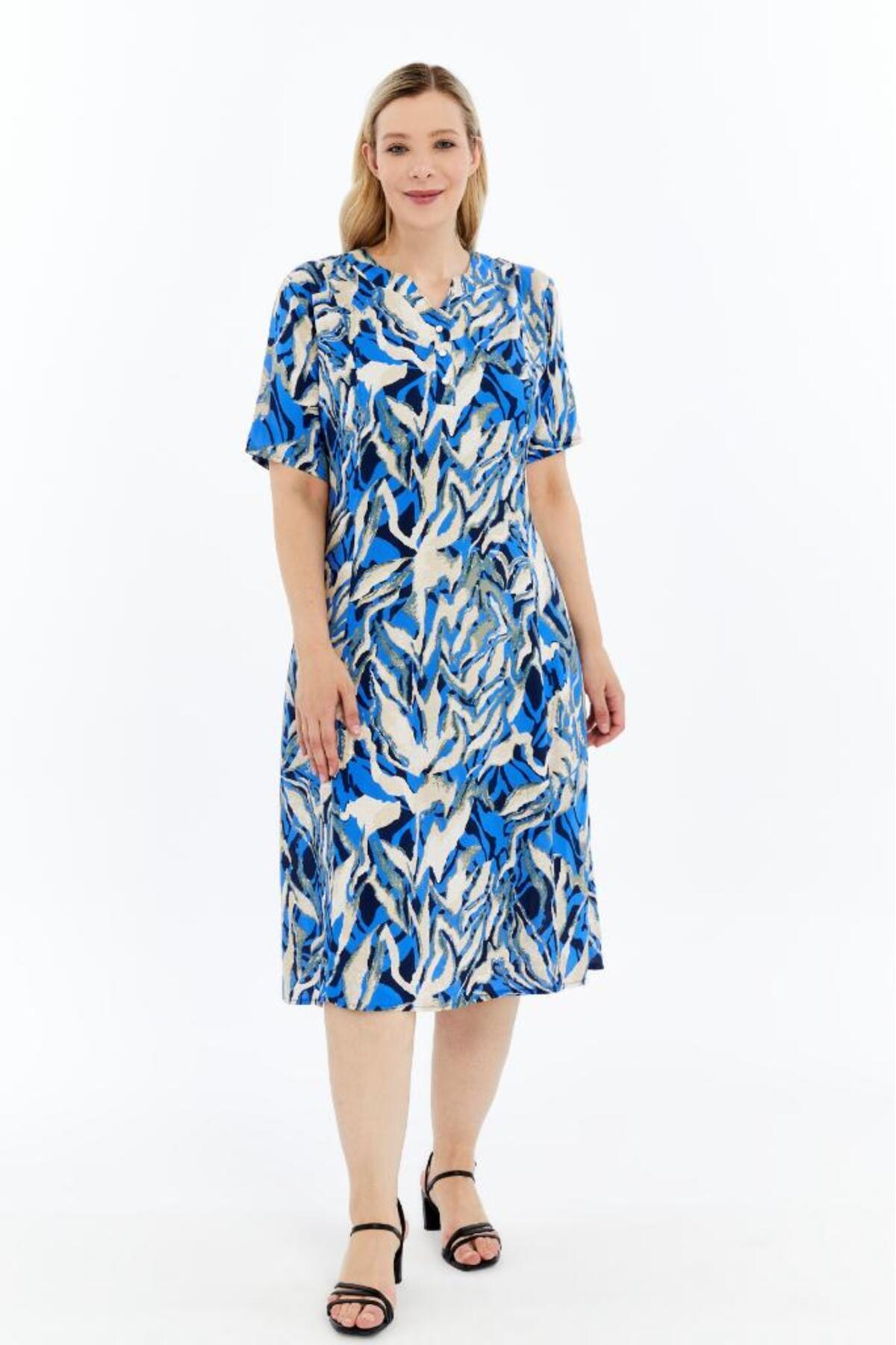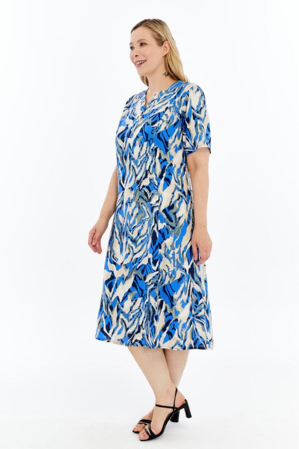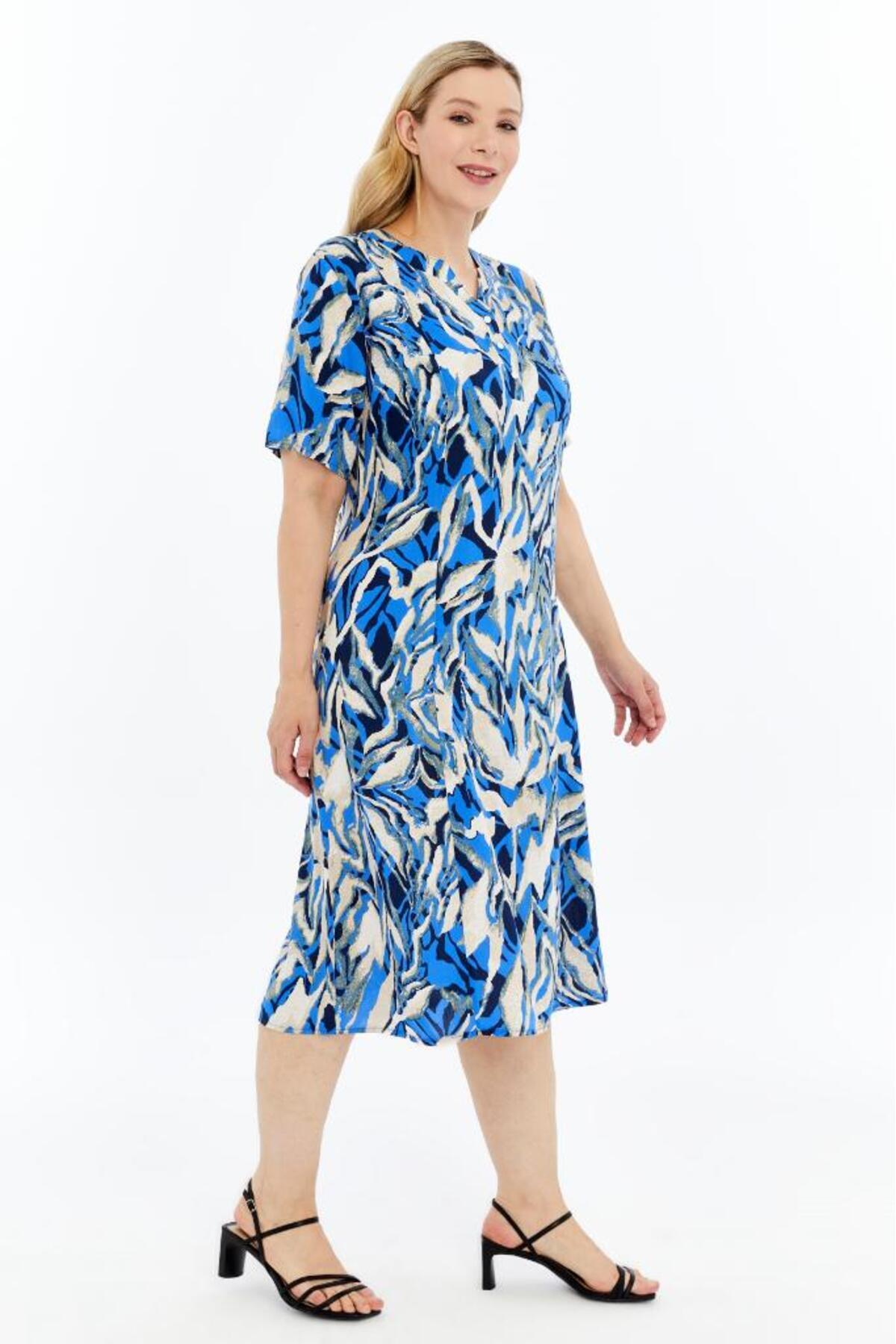 Mavi Yaz Esintisi Desenli Kısa Kollu Viskon Yazlık Anne Elbisesi Mavi Yaz Esintisi Desenli Kısa Kollu Viskon Yazlık Anne Elbisesi KV06 3XL