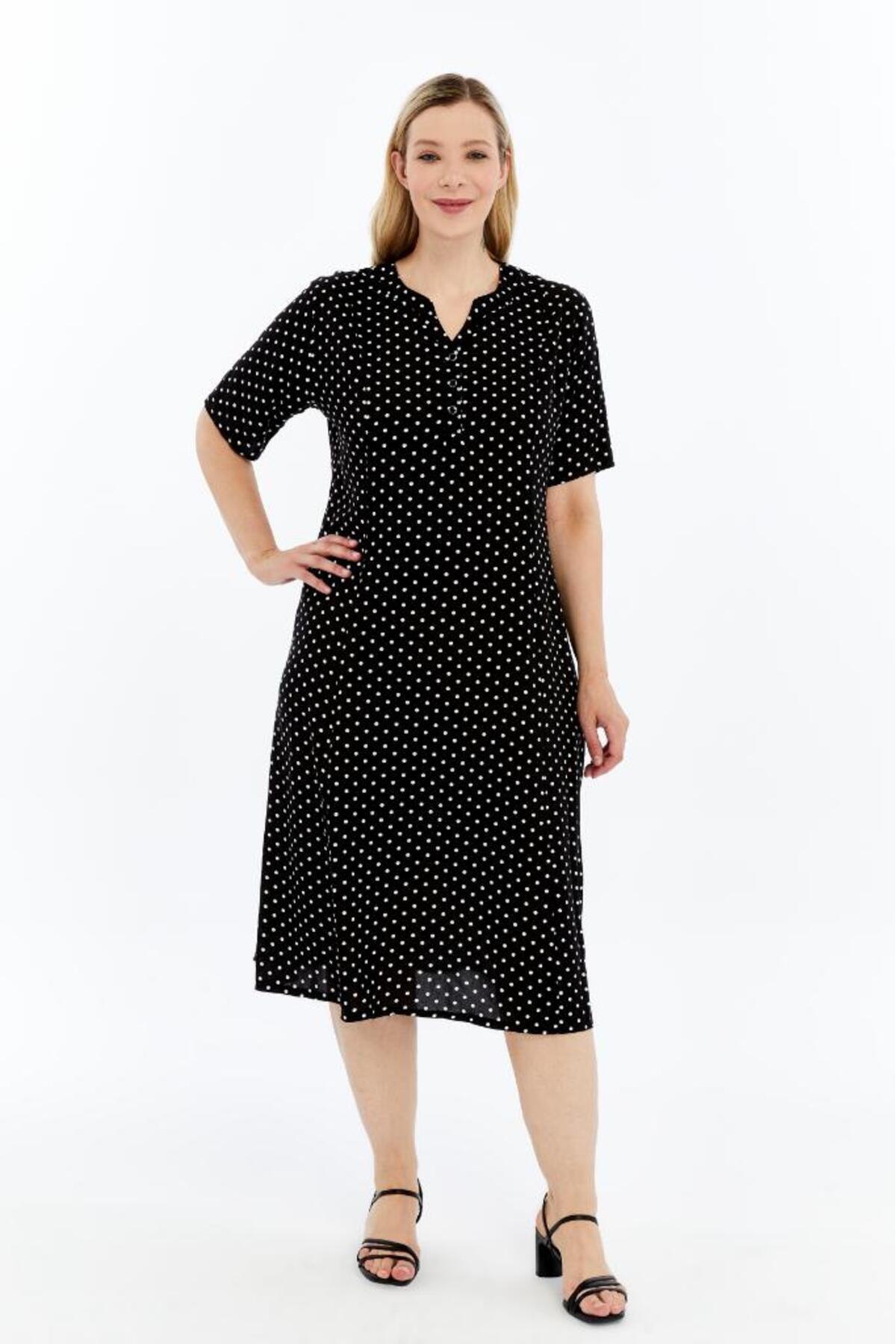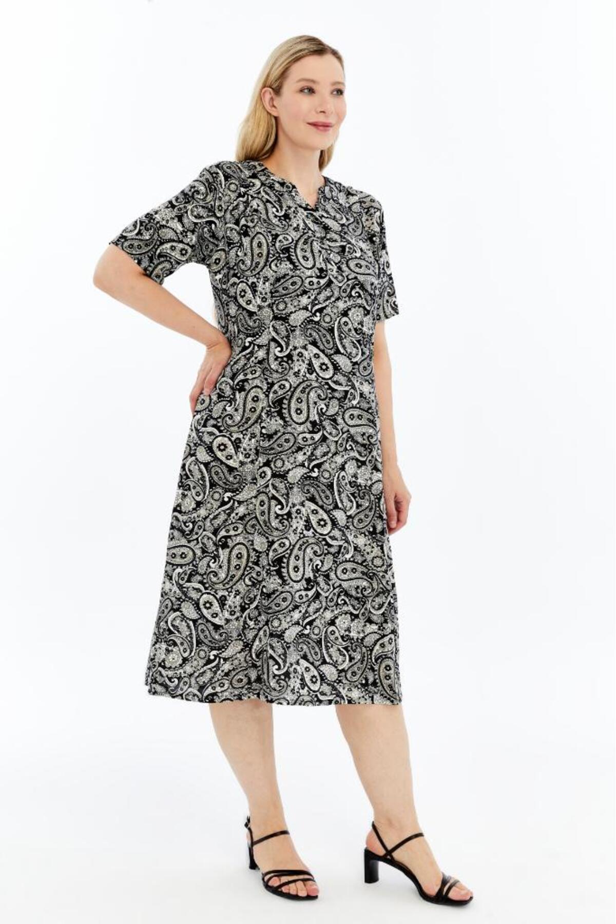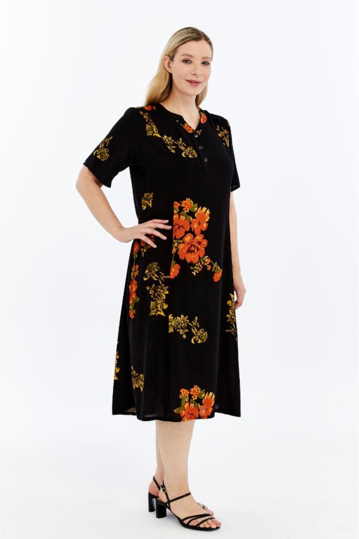 Mavi Yaz Esintisi Desenli Kısa Kollu Viskon Yazlık Anne Elbisesi Mavi Yaz Esintisi Desenli Kısa Kollu Viskon Yazlık Anne Elbisesi KV06 3XL