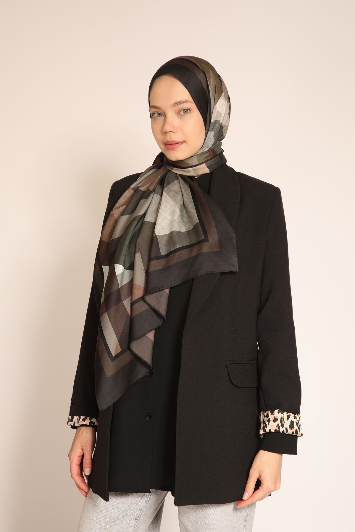 kel Çift Taraflı Soft Ton Geometrik Desenli İpek Şal kel Çift Taraflı Soft Ton Geometrik Desenli İpek Şal AKL5002 75 x 185