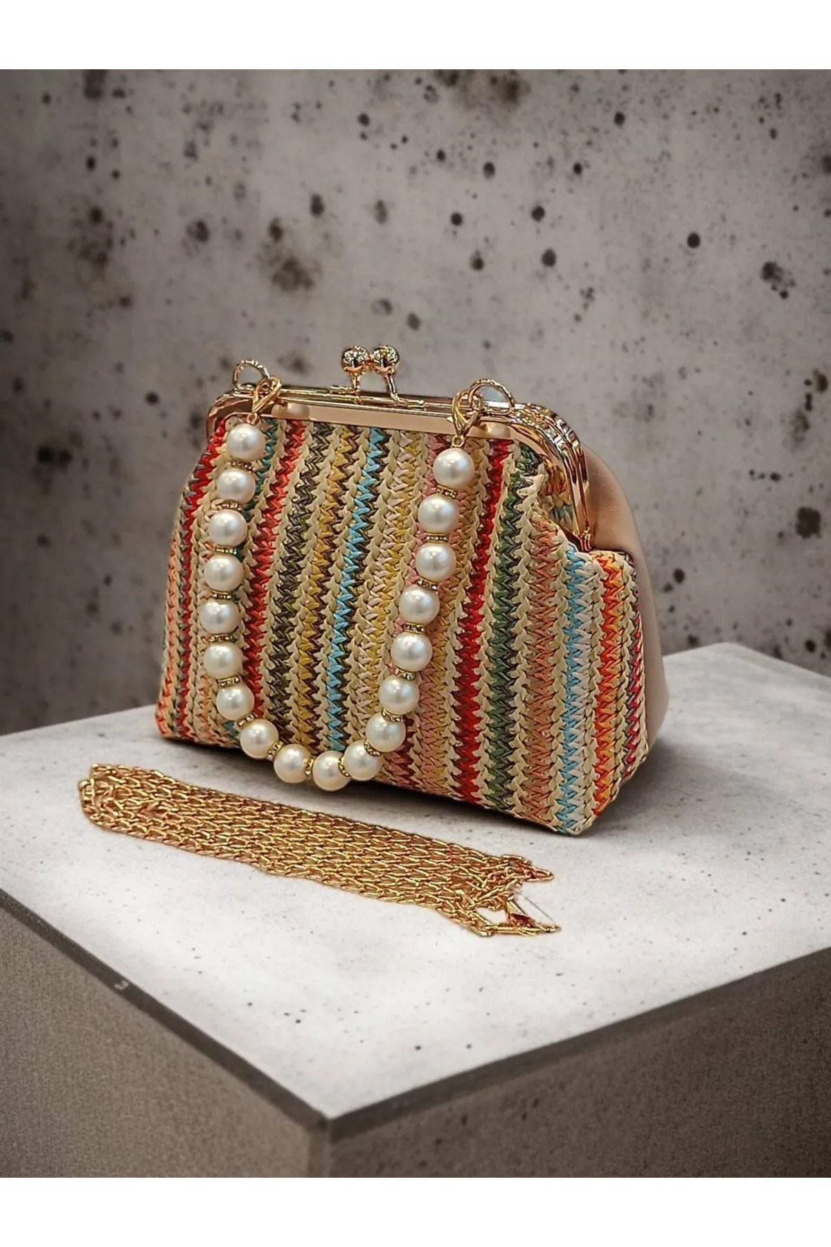 Kadın Hasır Görünümlü Boncuk Saplı El ve Omuz Çanta. ( 20x15 CM ) Kadın Hasır Görünümlü Boncuk Saplı El ve Omuz Çanta. ( 20x15 CM ) Baby6575 Standart