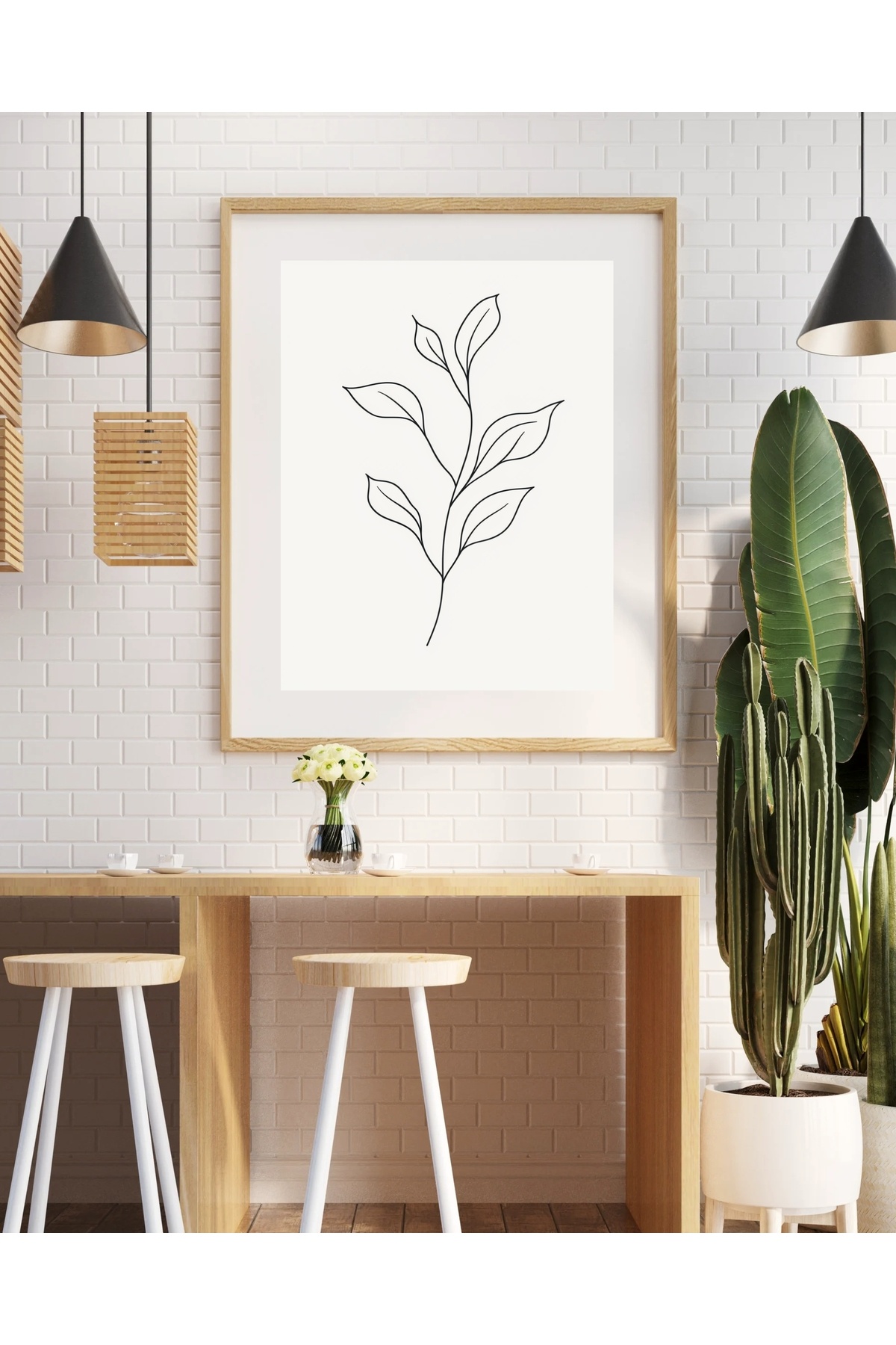 Minimal Botanik Çizgi Sanat Baskısı – Siyah Beyaz Bitki Illüstrasyonu | Modern Duvar Sanatı