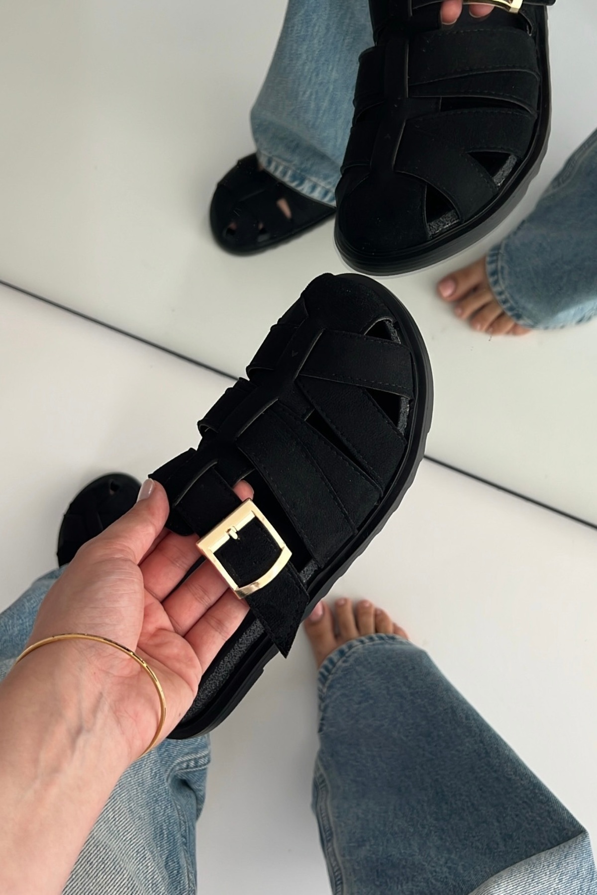 Zizi Siyah El Yapımı Konfor ve Şık Altın Toka Detaylı Süet Kadın Terlik Zizi Siyah El Yapımı Konfor ve Şık Altın Toka Detaylı Süet Kadın Terlik Zizi3231 40
