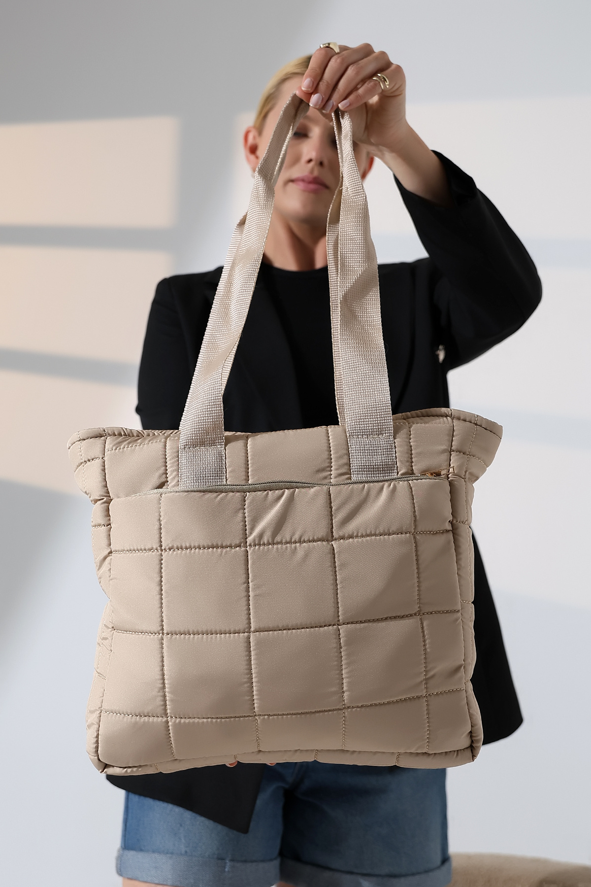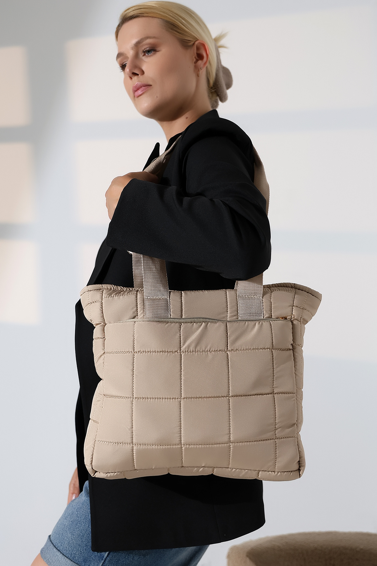 Bej Kapitone 2 Gözlü Puf Kumaş Büyük Boy Kadın Omuz Çantası Bej Kapitone 2 Gözlü Puf Kumaş Büyük Boy Kadın Omuz Çantası ENCL-KAPITONE-21 Standart