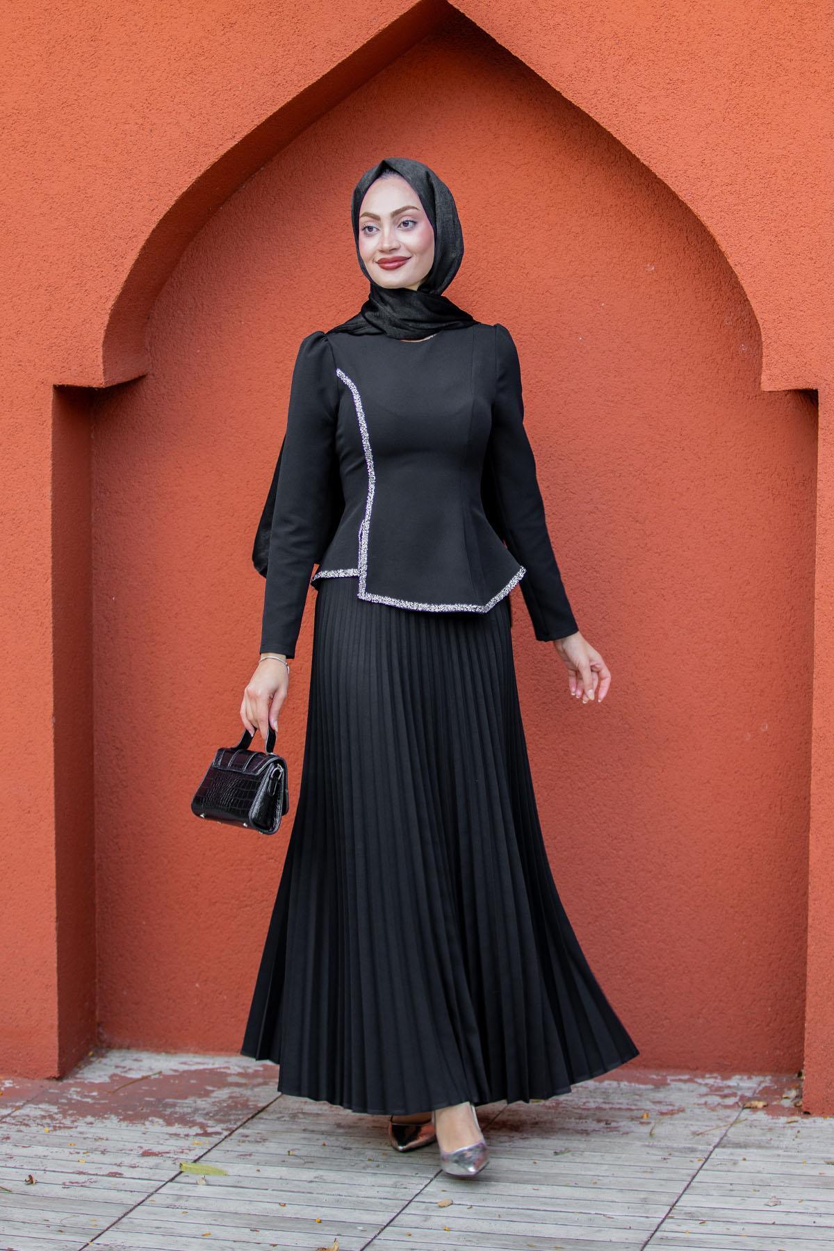 Mira Bürümcük Kumaş Tunik Pantolon Takım-Mor Mira Bürümcük Kumaş Tunik Pantolon Takım-Mor Tesettür01254 44