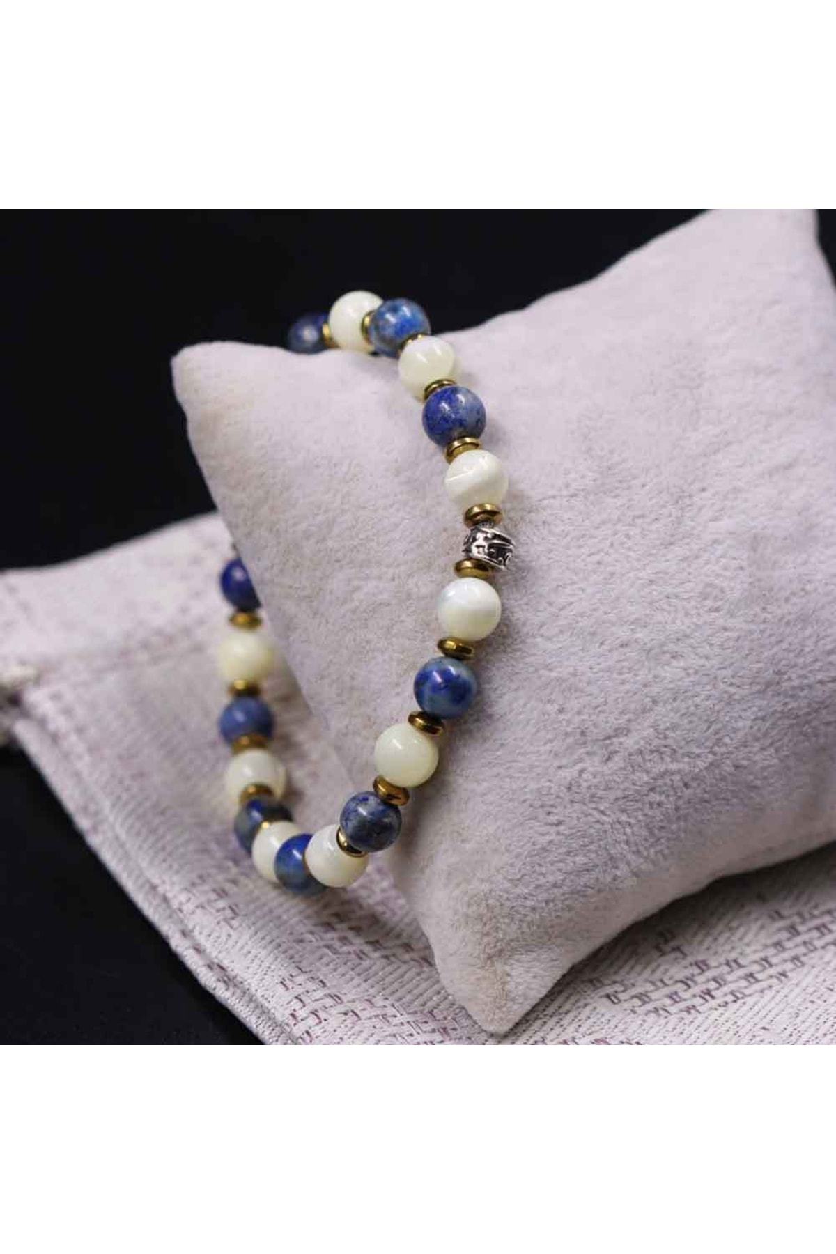 14 Ayar Altın Kaplama Doğal Lapis Lazuli ve Beyaz Kırık Taş Gümüş Bileklik - BS00100 14 Ayar Altın Kaplama Doğal Lapis Lazuli ve Beyaz Kırık Taş Gümüş Bileklik - BS00100 18 cm