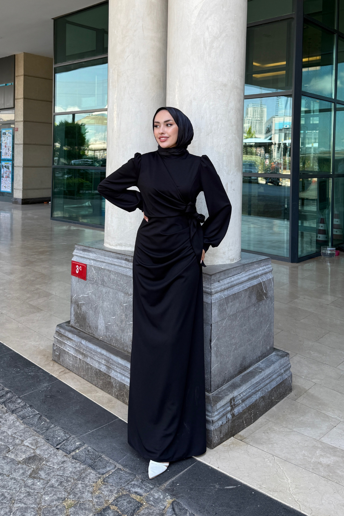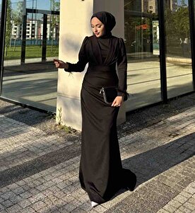 Sahra Yandan Bağlamalı Scuba Tesettür Siyah Elbise Sahra Yandan Bağlamalı Scuba Tesettür Siyah Elbise 44678 42