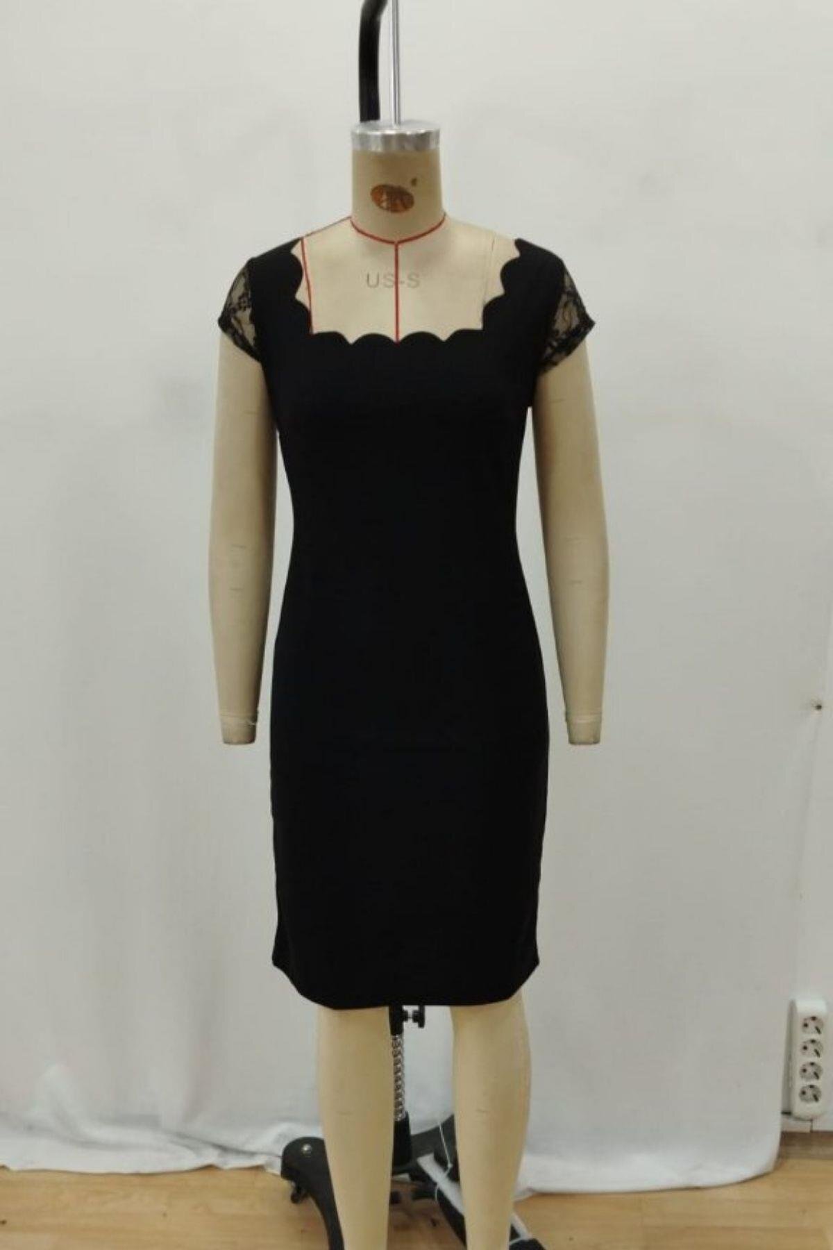 Kare Yaka Dantel Kollu İthal Krep Elbise Kare Yaka Dantel Kollu İthal Krep Elbise DOPJS61543DOP 2XL-3XL