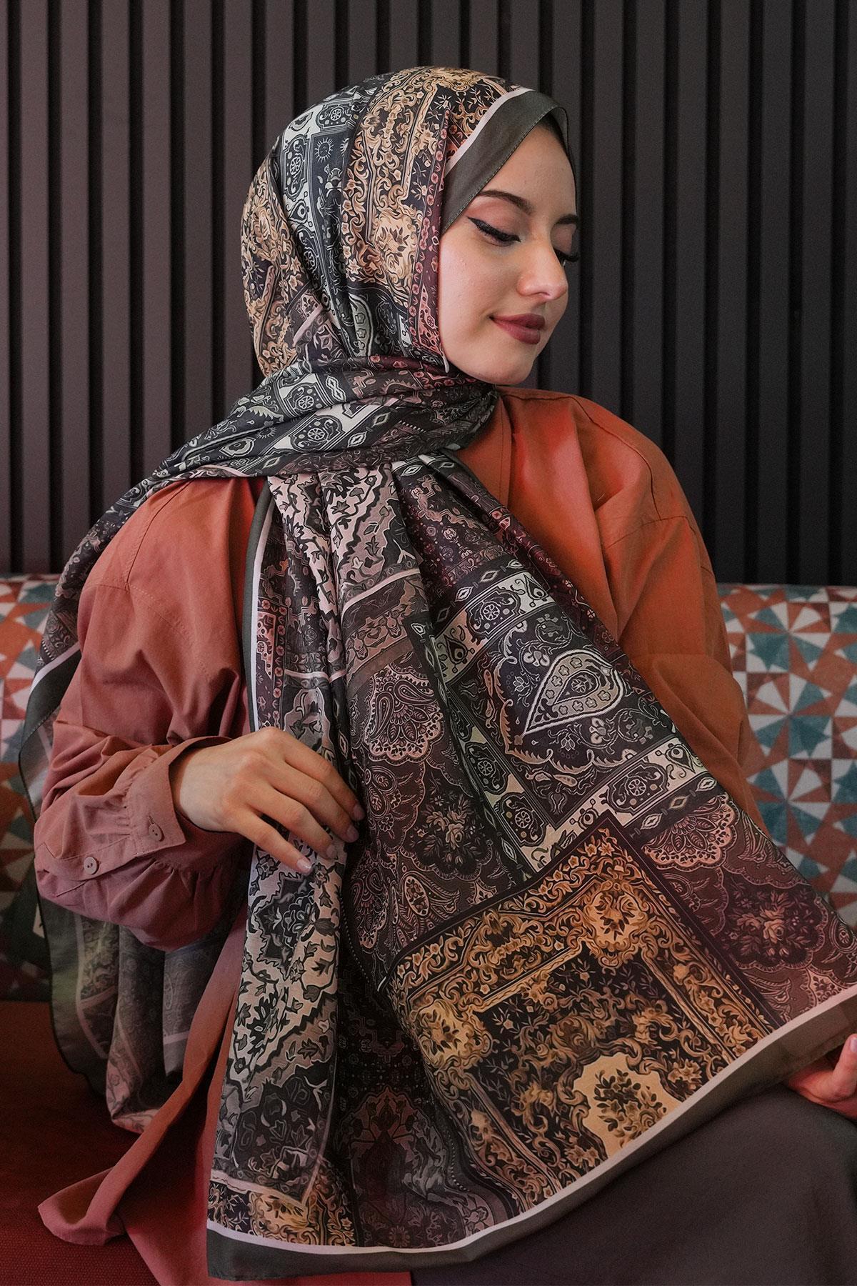 Etnik Desen Haki Soft Pamuk Şal Etnik Desen Haki Soft Pamuk Şal EDSS01 75 x 185