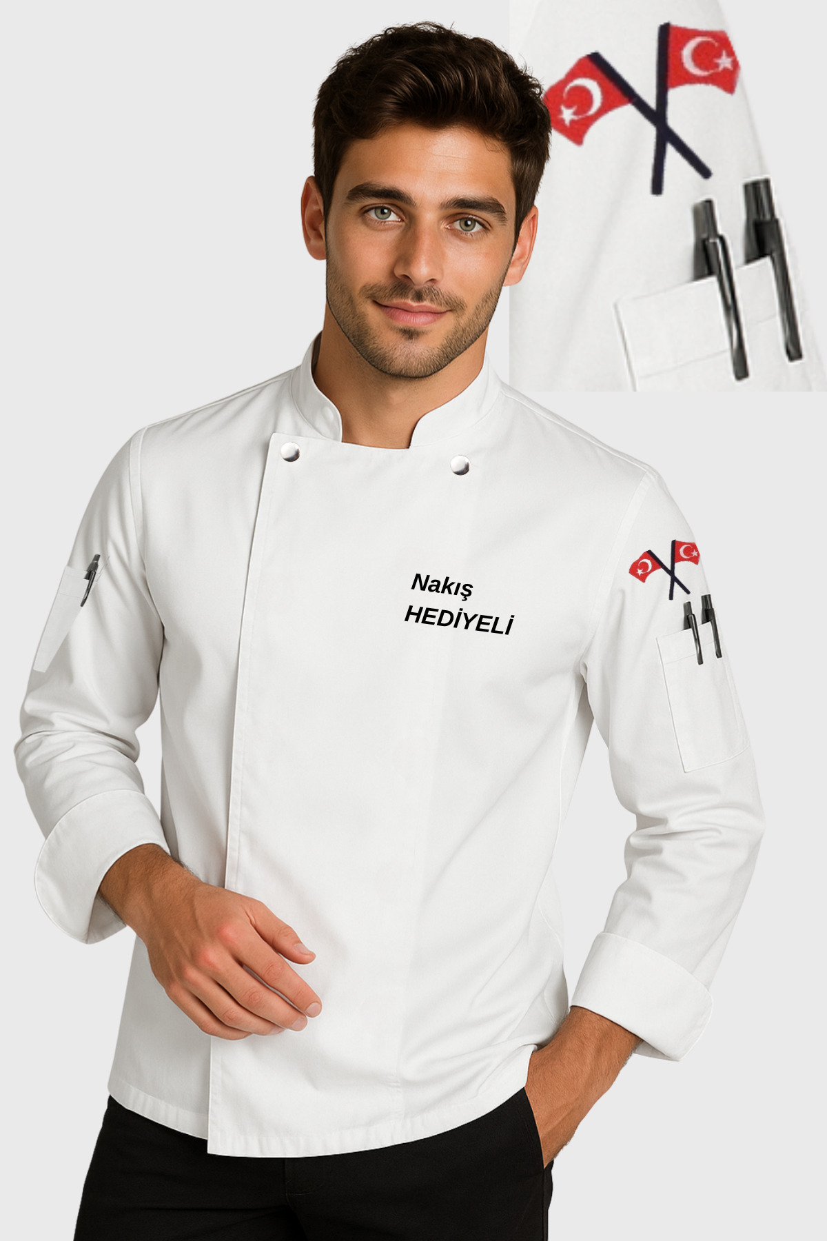 S-2 İsim Nakışlı Erkek Şef Aşçı ceketi S-2 İsim Nakışlı Erkek Şef Aşçı ceketi 2XL