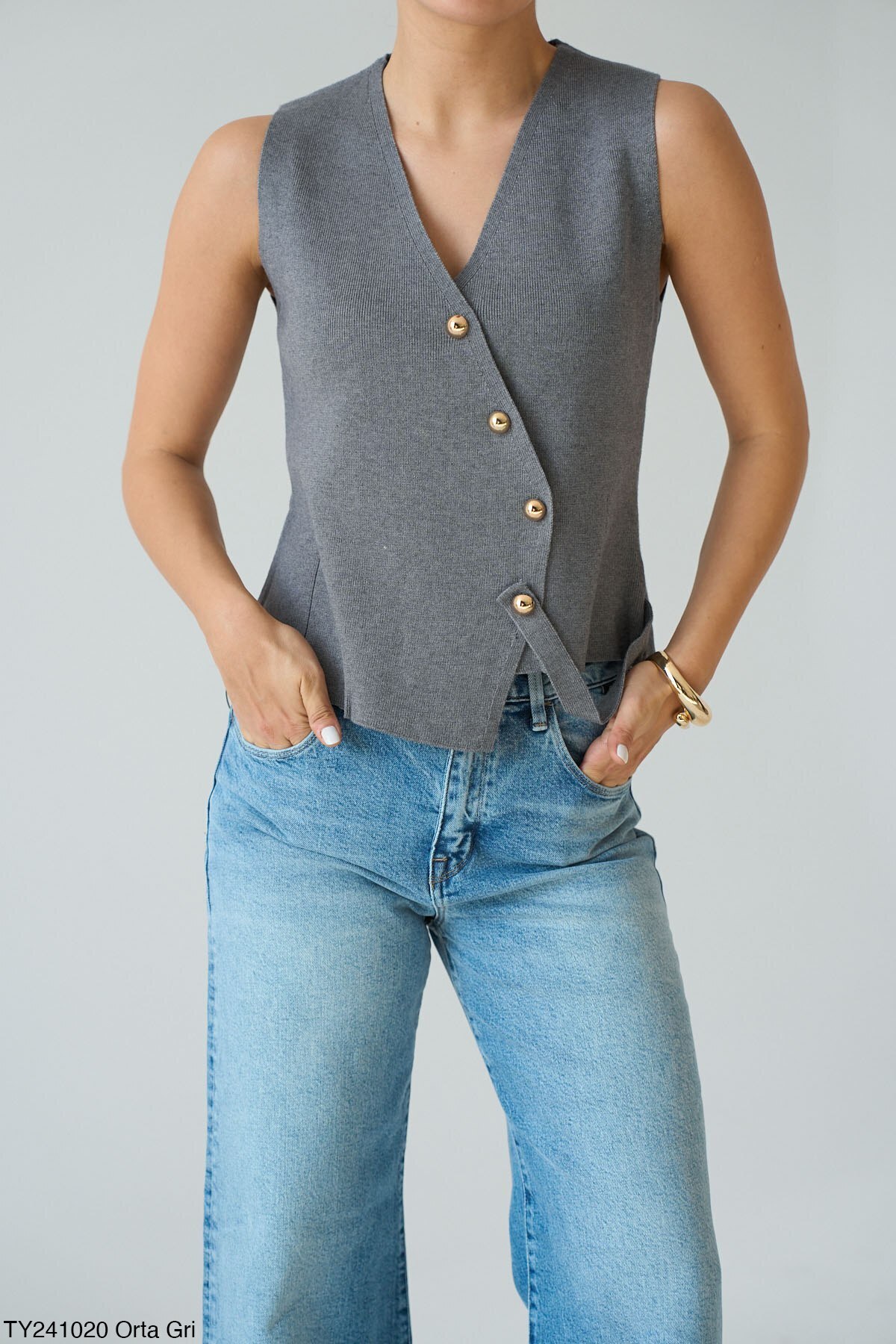 Fiyonk Düğmeli Kısa Yelek Fiyonk Düğmeli Kısa Yelek yelek2025f M