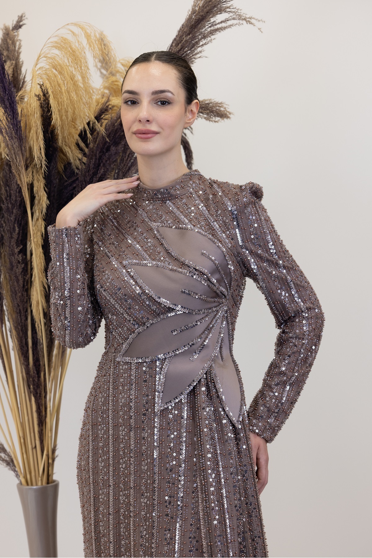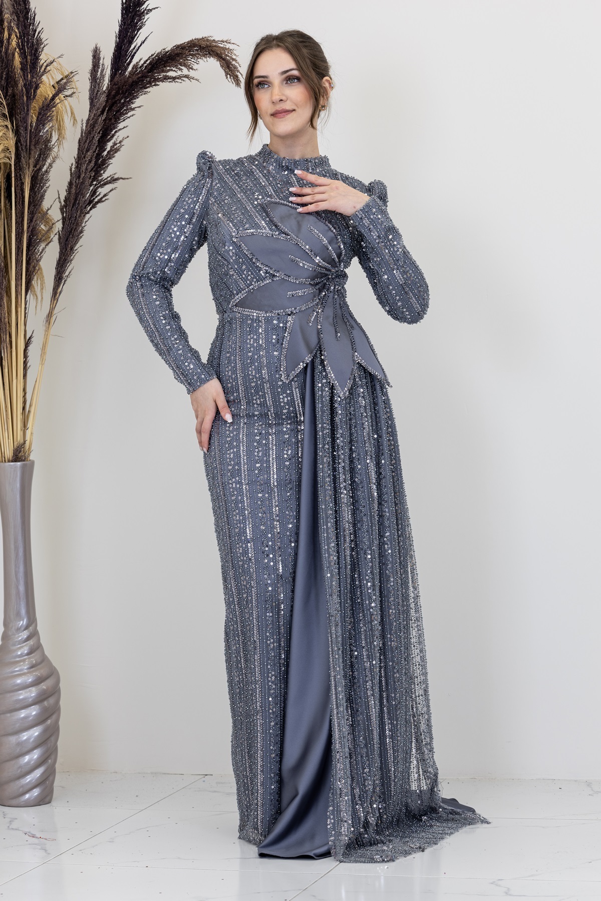 Beli Çiçek Detaylı Bergüzar Abiye Beli Çiçek Detaylı Bergüzar Abiye 1088 48