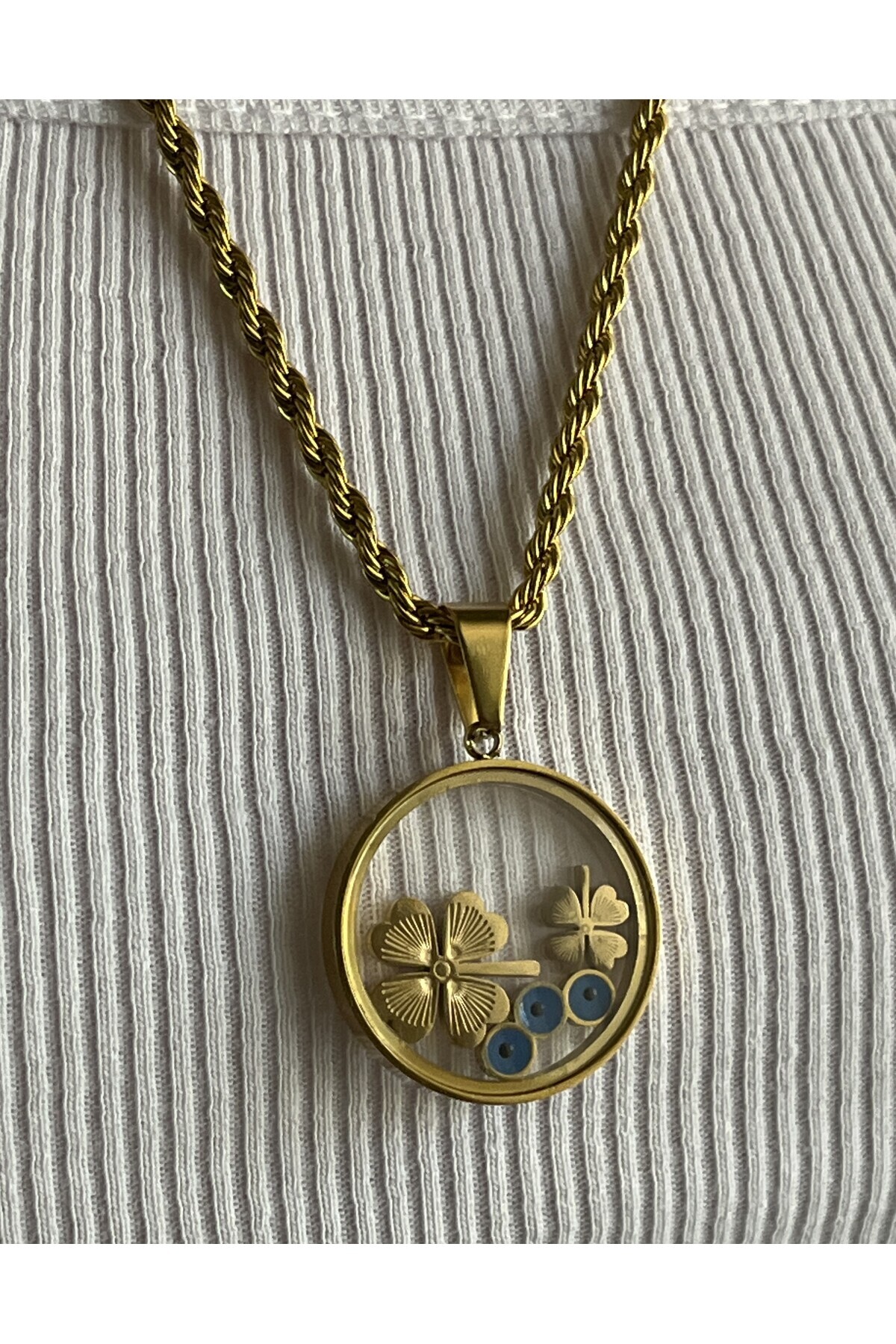 Lucky Store Uzun Kalın Zincirli Uç İçerisinde Yonca Gold Kolye Lucky Store Uzun Kalın Zincirli Uç İçerisinde Yonca Gold Kolye K-100 0