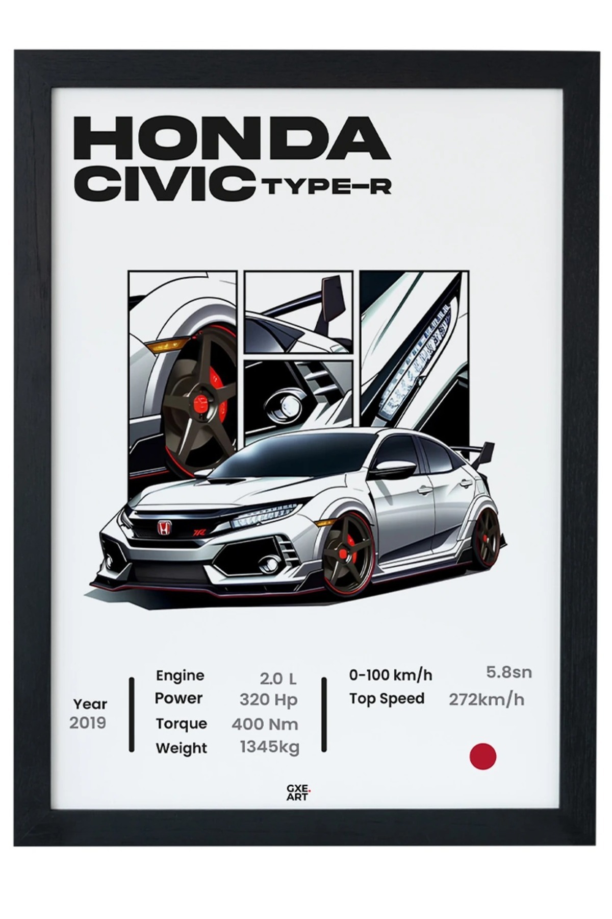 Honda Civic Araba Siyah Ahşap Çerçeveli Dekoratif Duvar Tablosu Honda Civic Araba Siyah Ahşap Çerçeveli Dekoratif Duvar Tablosu CIV-3 50 x 70