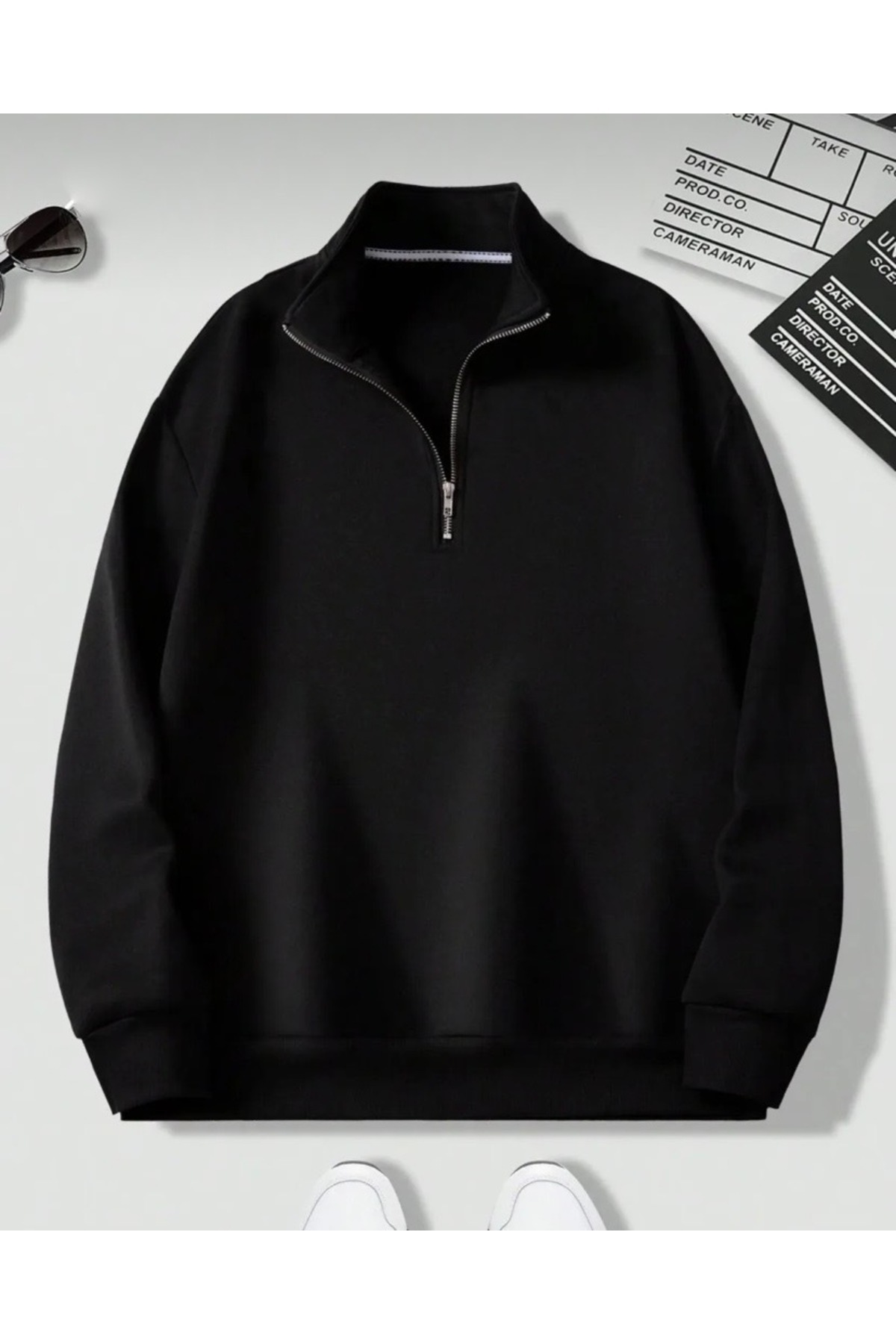 Unisex Siyah Dik Yaka Fermuarlı Kazak Sweatshirt Unisex Siyah Dik Yaka Fermuarlı Kazak Sweatshirt SNT-DİKYAKAYENİ XL