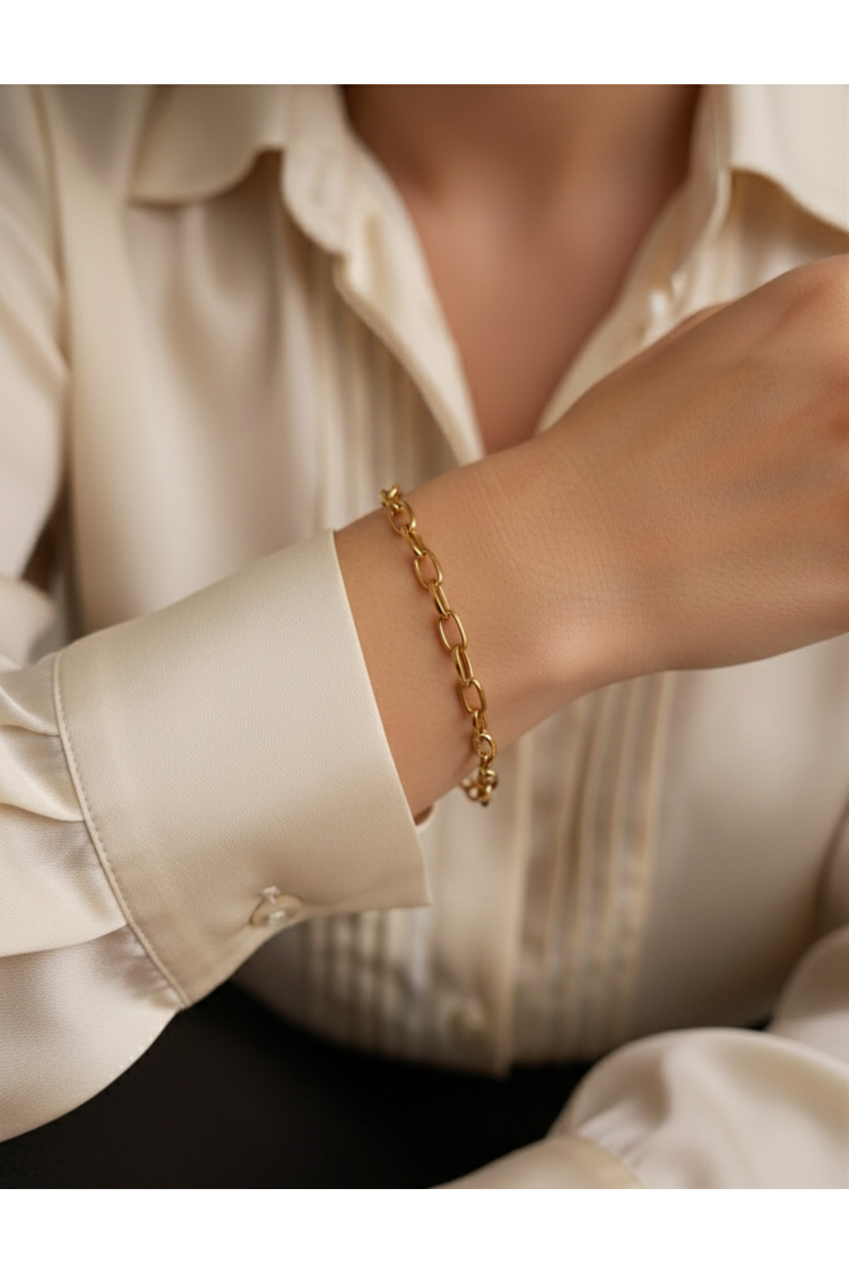Altın Renk Kararmaz Ayarlanabilir Çelik Bileklik Altın Renk Kararmaz Ayarlanabilir Çelik Bileklik DESO0042 تک سایز
