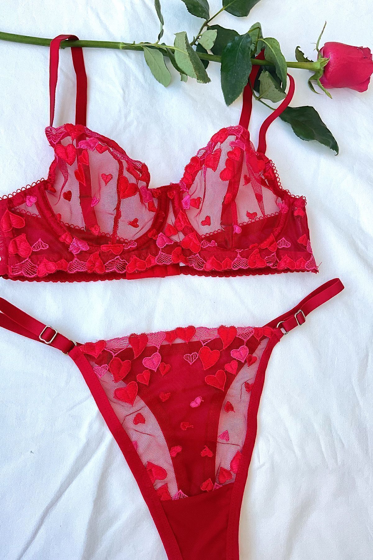 Kırmızı kalp detaylı iç çamaşırı takımı (Gizli Gönderim) Kırmızı kalp detaylı iç çamaşırı takımı (Gizli Gönderim) kalpli XL