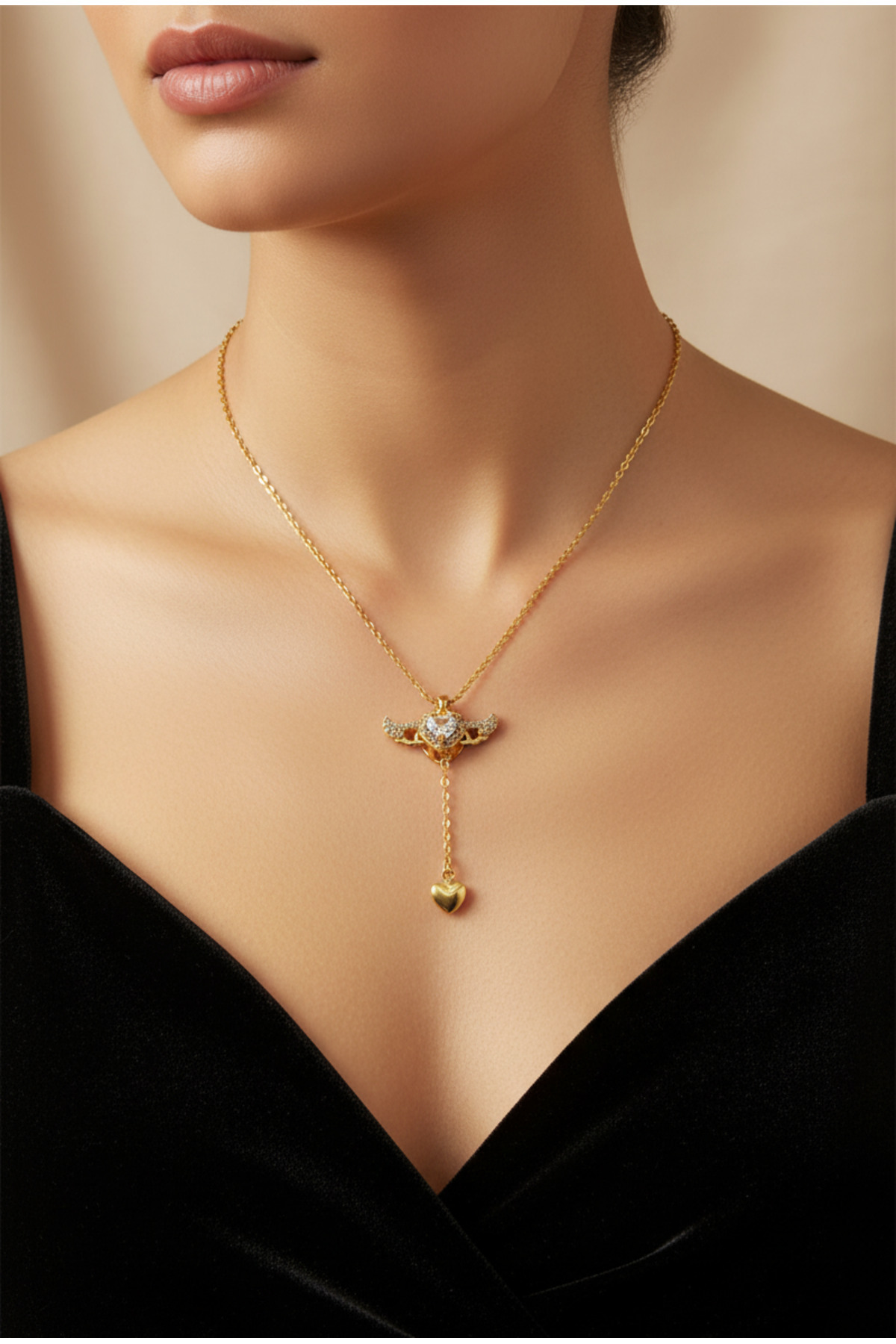 Sallanan Kanatlı Kalp Kararmaz Antialerjik Altın Renk Çelik Kolye Sallanan Kanatlı Kalp Kararmaz Antialerjik Altın Renk Çelik Kolye DESO0058 تک سایز