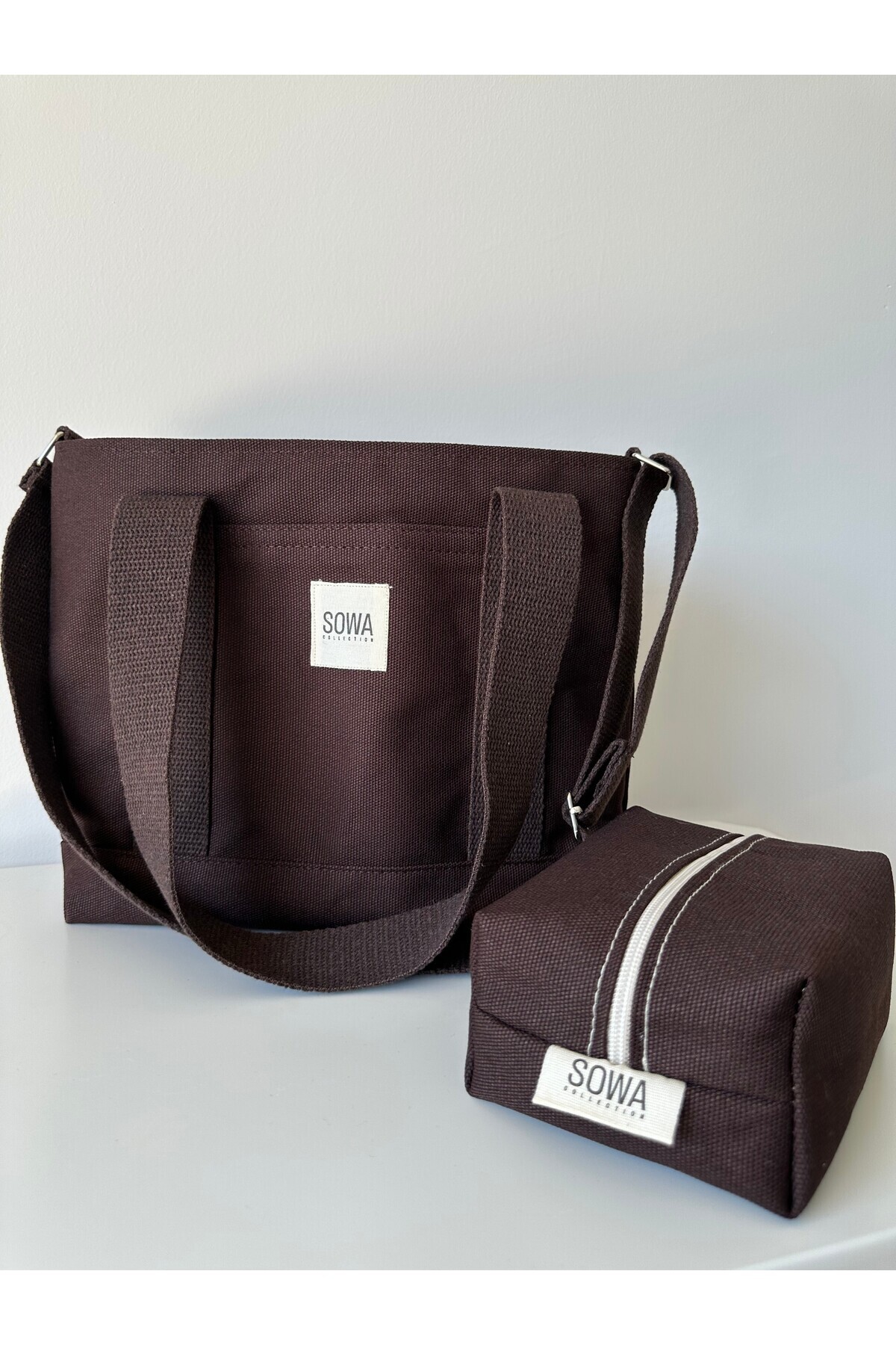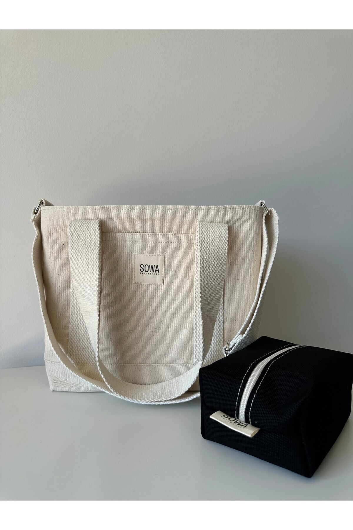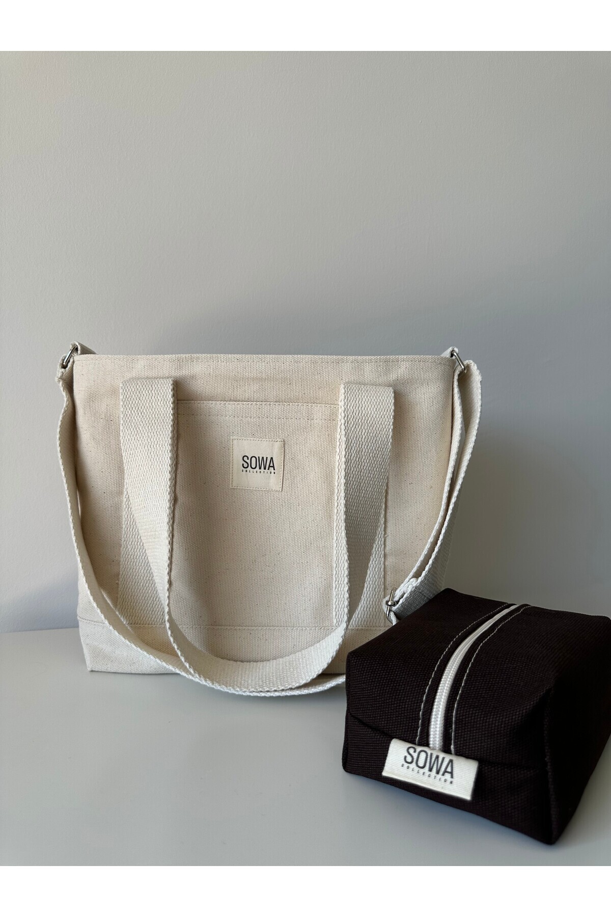 مشخصات فنی 2'li Kanvas Çıtçıtlı Çanta Ayarlanabilir Çapraz Askılı Kadın El Ve Omuz Çantası ve Makyaj Çantası