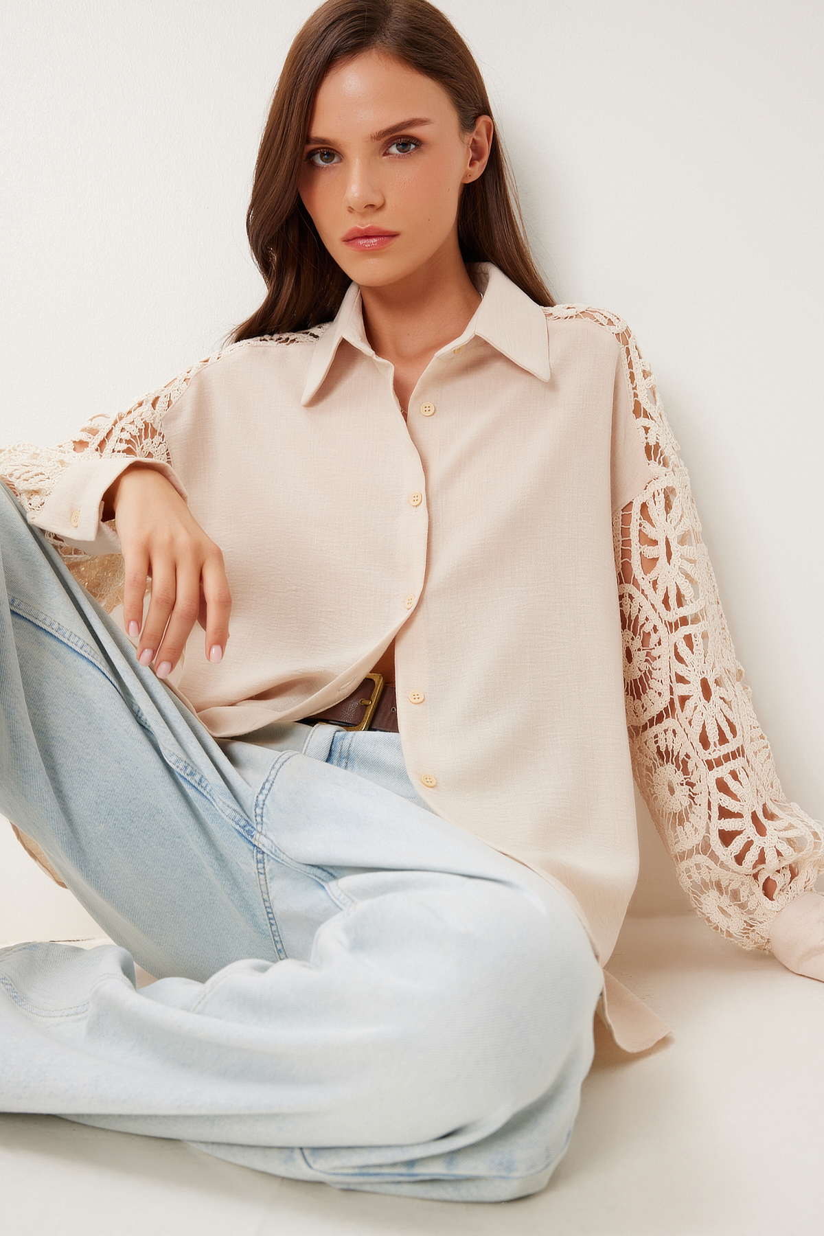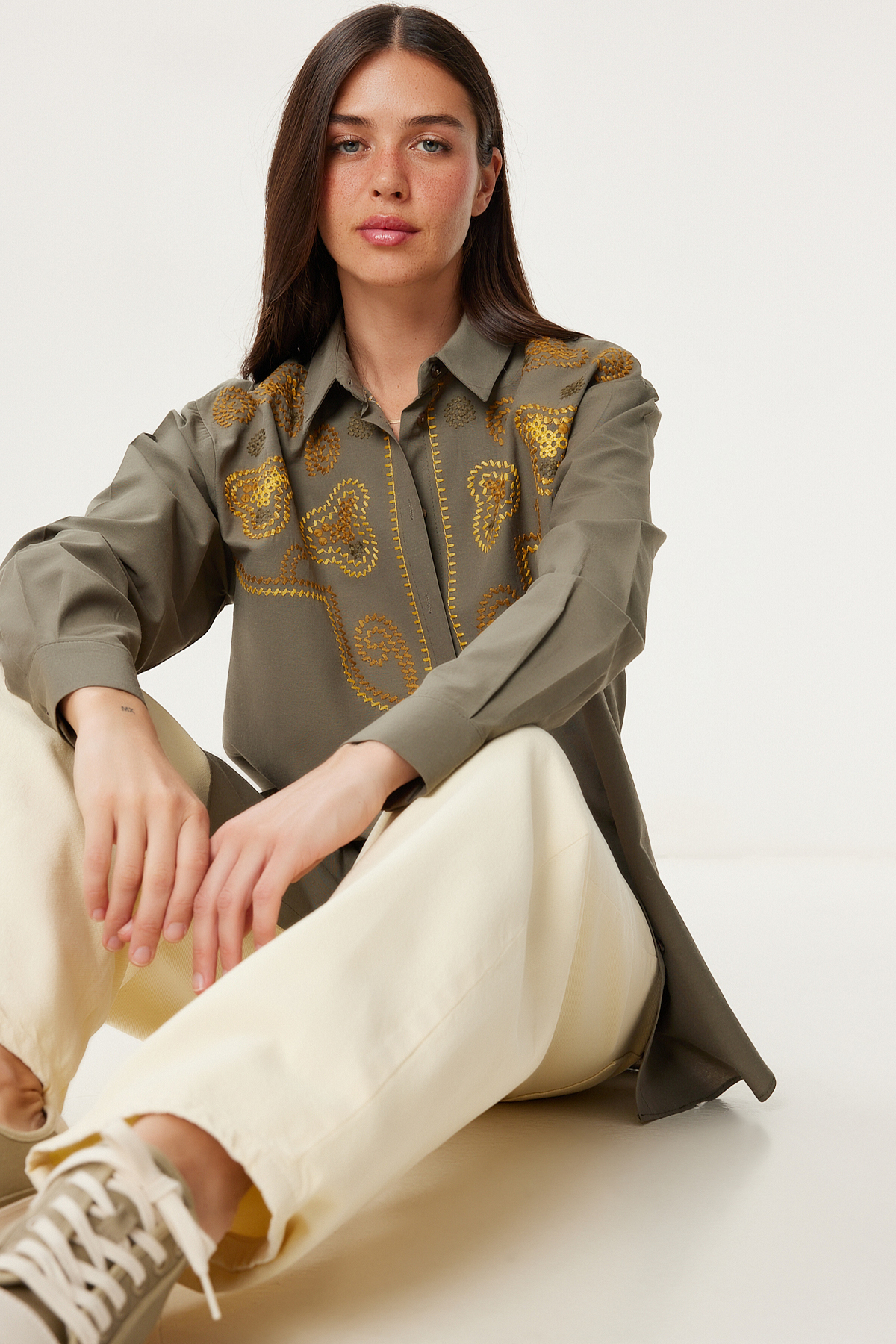 Kadın Mavi Nakış İşlemeli Dokuma Gömlek FG00057 Kadın Mavi Nakış İşlemeli Dokuma Gömlek FG00057 40