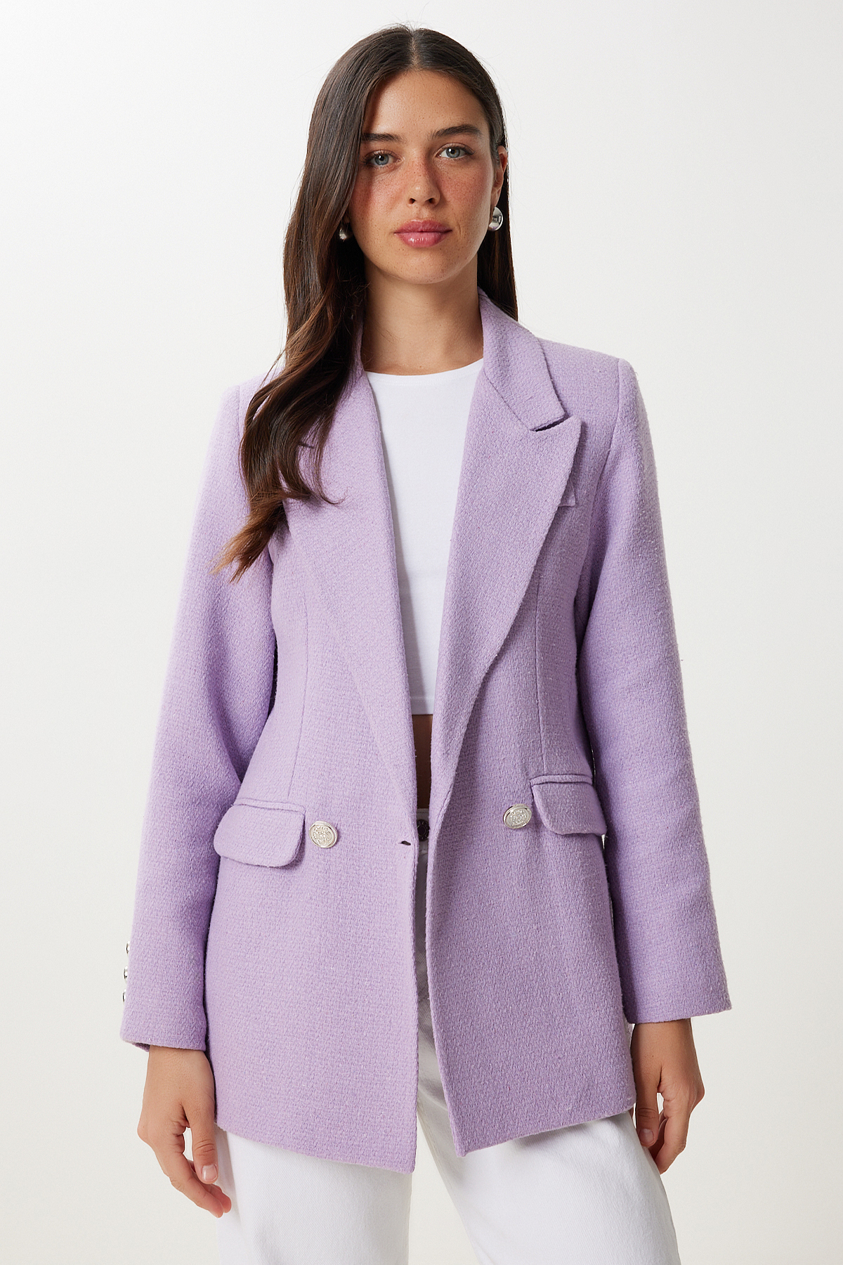 Kadın Pembe Vatkalı Şık Düğmeli Tüvit Blazer Ceket XL00005 Kadın Pembe Vatkalı Şık Düğmeli Tüvit Blazer Ceket XL00005 42