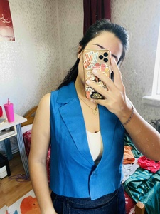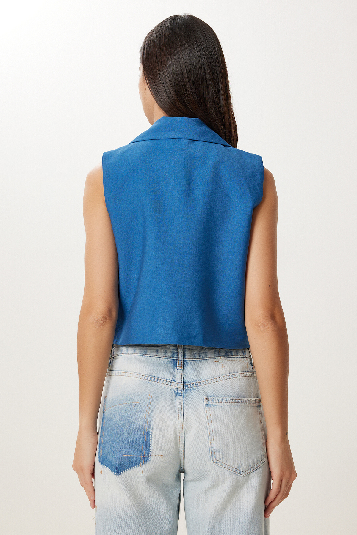 Şal Yaka Crop Keten Yelek Şal Yaka Crop Keten Yelek LTO0006 40
