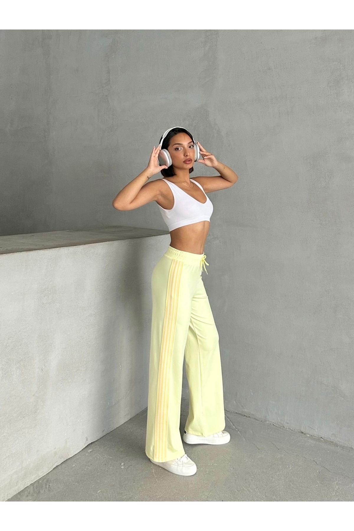 Yan Şeritli Geniş Paça Eşofman Altı Sarı MISSEA25067 Yan Şeritli Geniş Paça Eşofman Altı Sarı MISSEA25067 XL