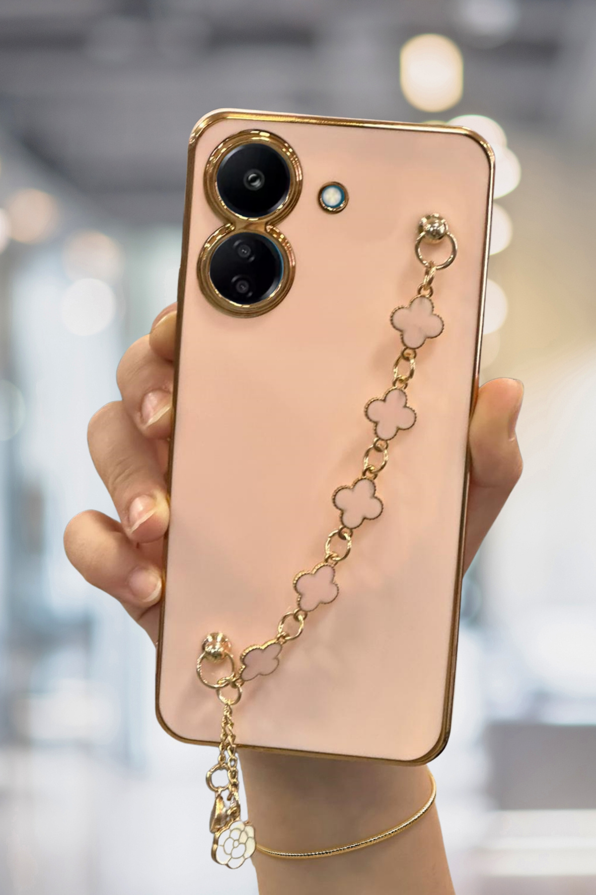 Xiaomi Redmi 13C Uyumlu Kılıf Parlak Kenarlı Altın İşlemeli Tutamaçlı Kamera Korumalı Kapak Xiaomi Redmi 13C Uyumlu Kılıf Parlak Kenarlı Altın İşlemeli Tutamaçlı Kamera Korumalı Kapak Elçek Redmi 13C تک سایز