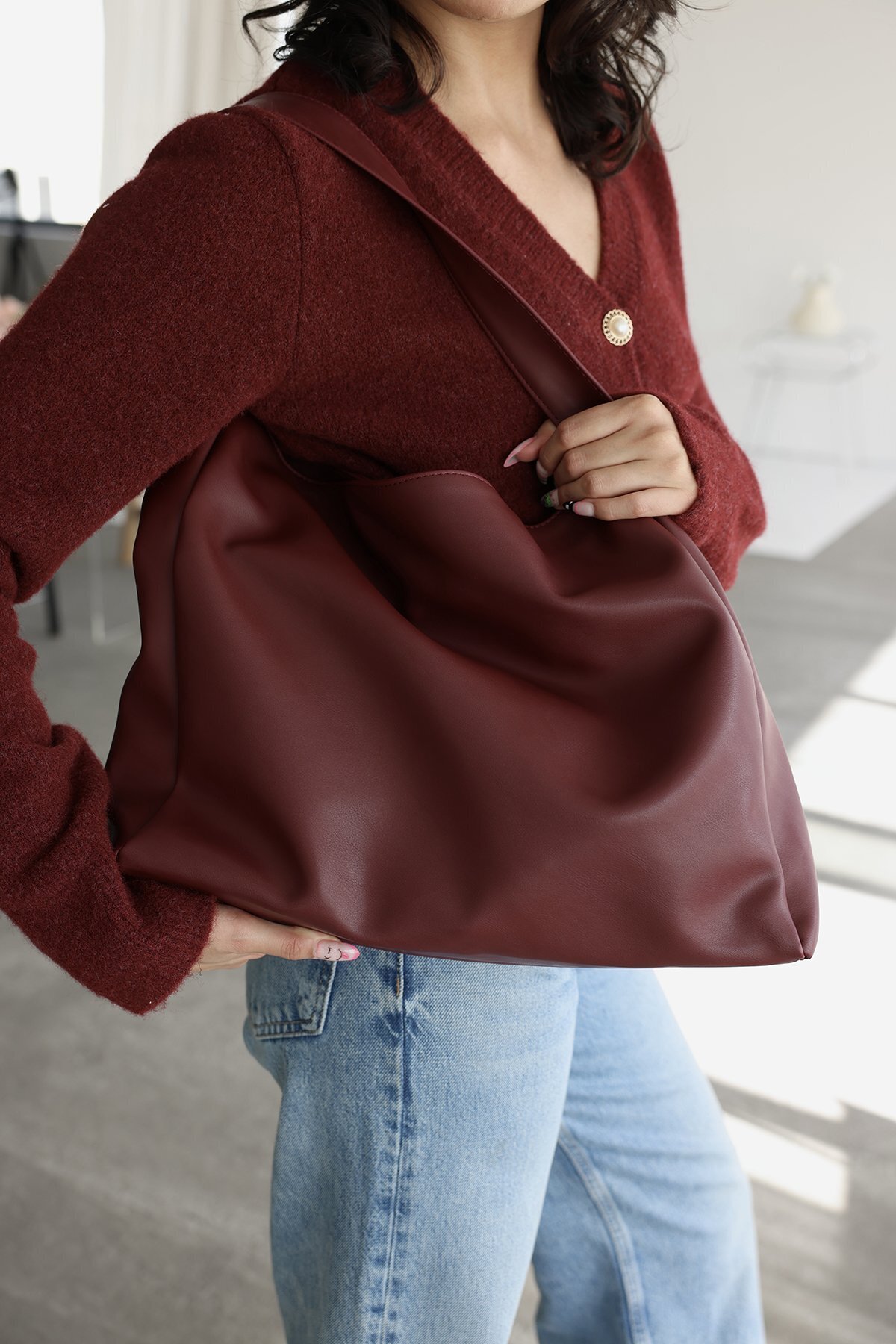 Kadın Bordo Büyük Boy Yumuşak Derili El ve Omuz Çantası Kadın Bordo Büyük Boy Yumuşak Derili El ve Omuz Çantası bykk تک سایز