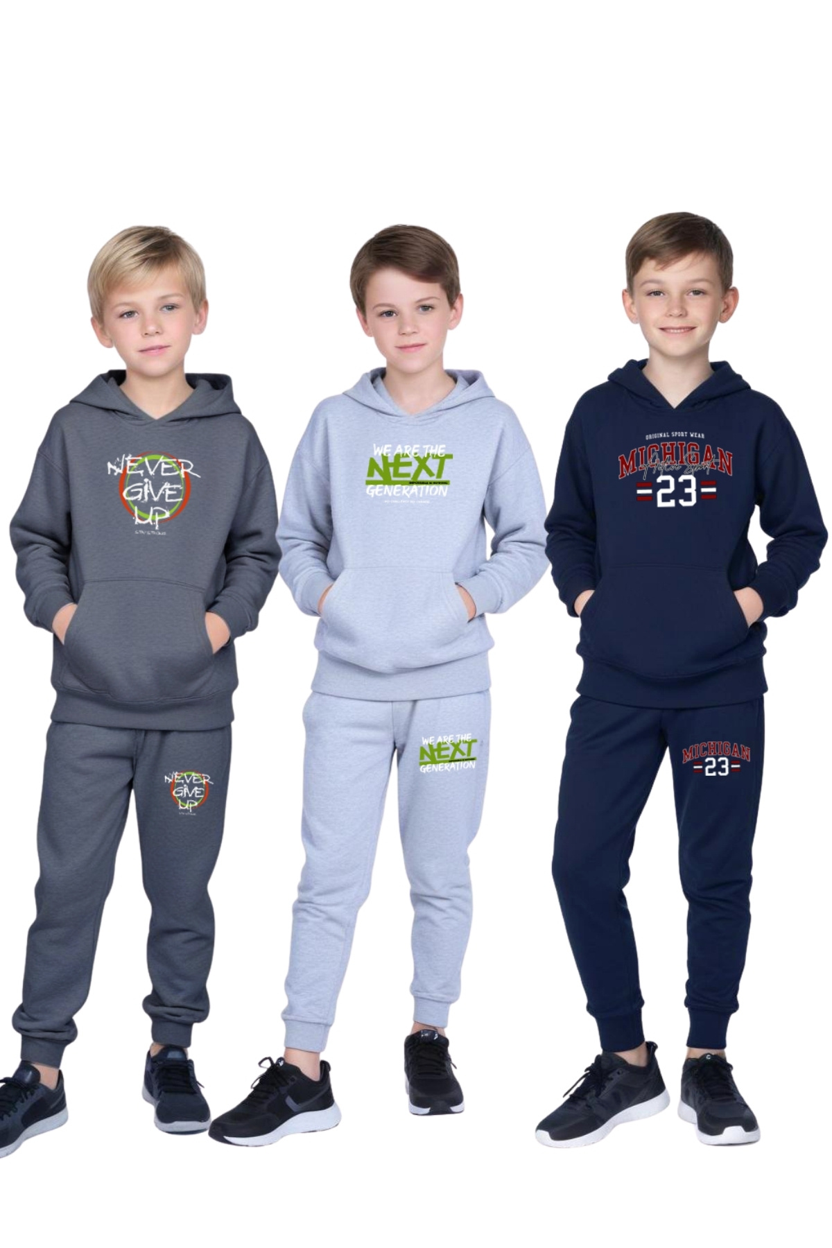 3'LÜ ERKEK ÇOCUK KANGURU CEPLİ KAPÜŞONLU BASKILI EŞOFMAN TAKIMI 3'LÜ ERKEK ÇOCUK KANGURU CEPLİ KAPÜŞONLU BASKILI EŞOFMAN TAKIMI FC01265 13 Yaş