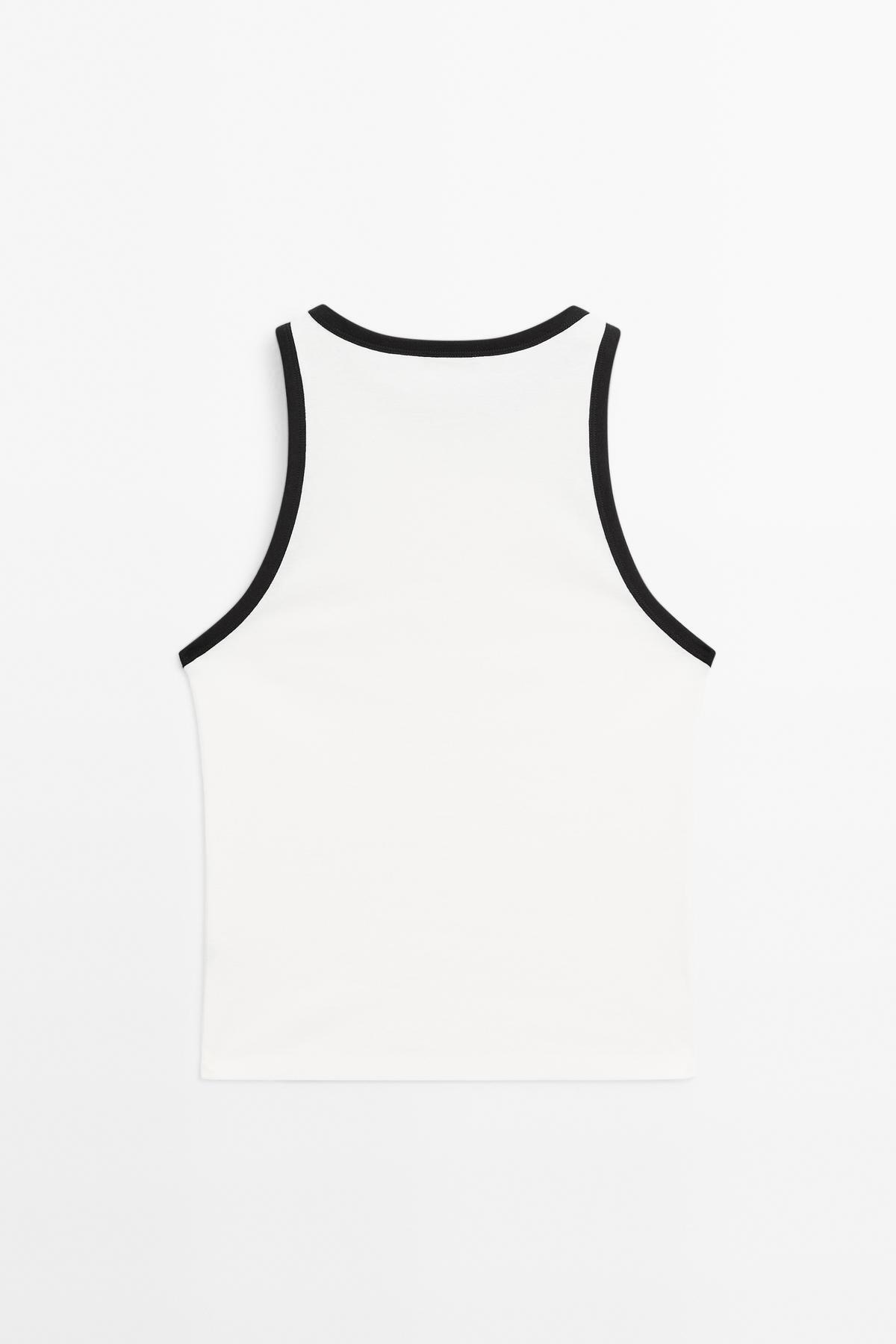 Kontrast detaylı %100 pamuklu halter yaka top Kontrast detaylı %100 pamuklu halter yaka top 00110779206212550 XL