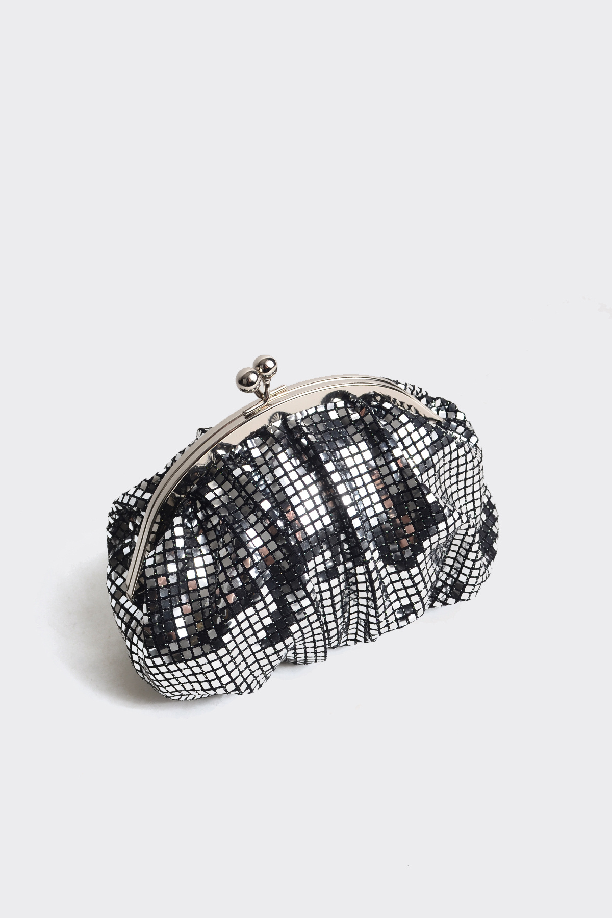 Gümüş Payetli Metal Klipsli Zincirli Abiye Çanta Gümüş Payetli Metal Klipsli Zincirli Abiye Çanta 0879SLN25 تک سایز