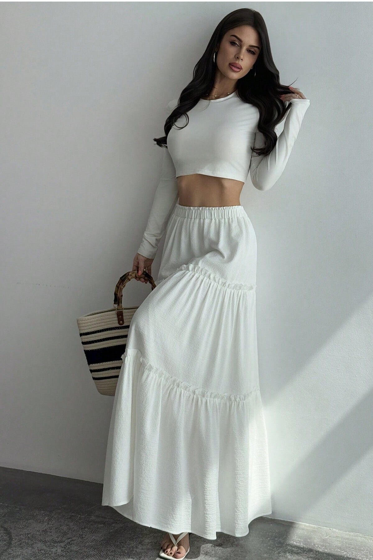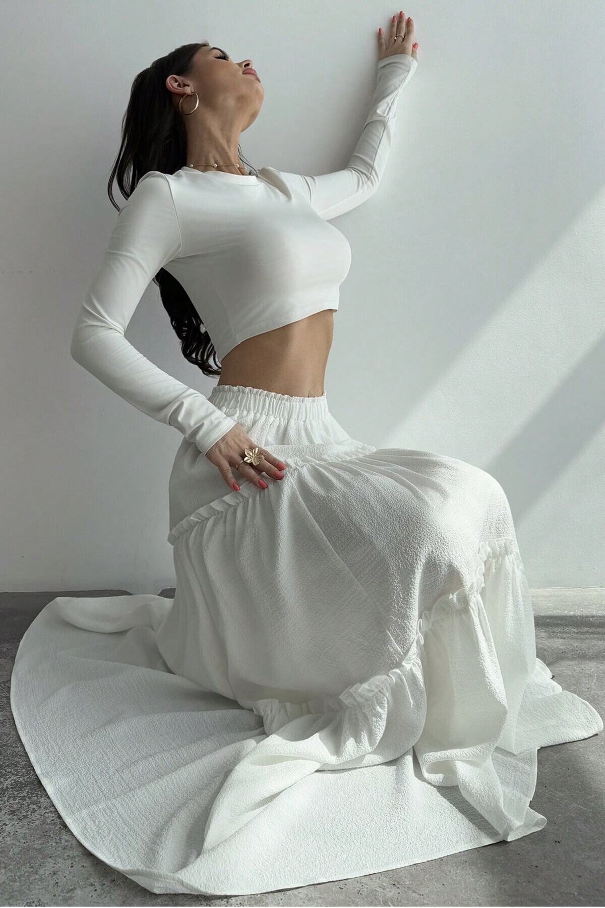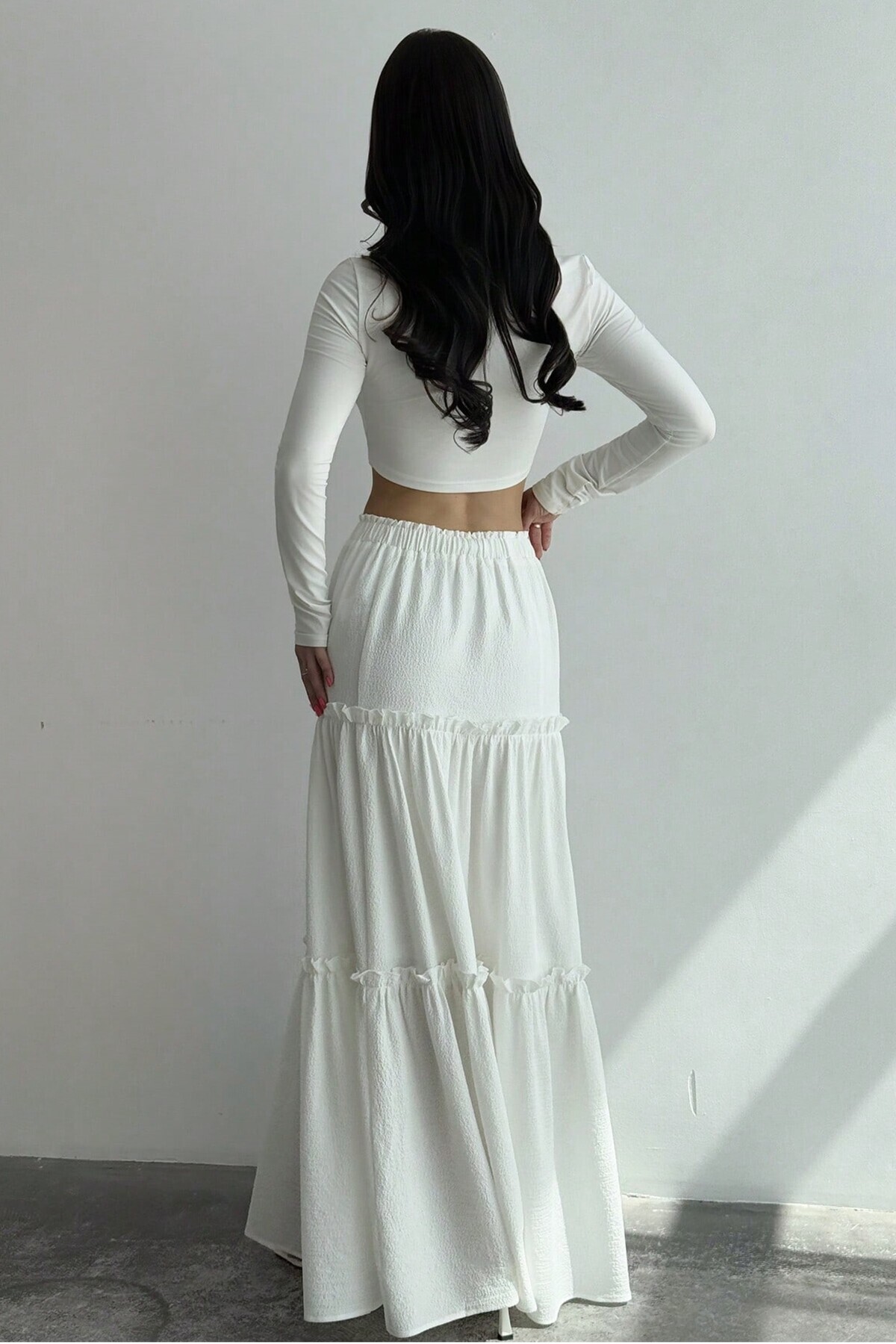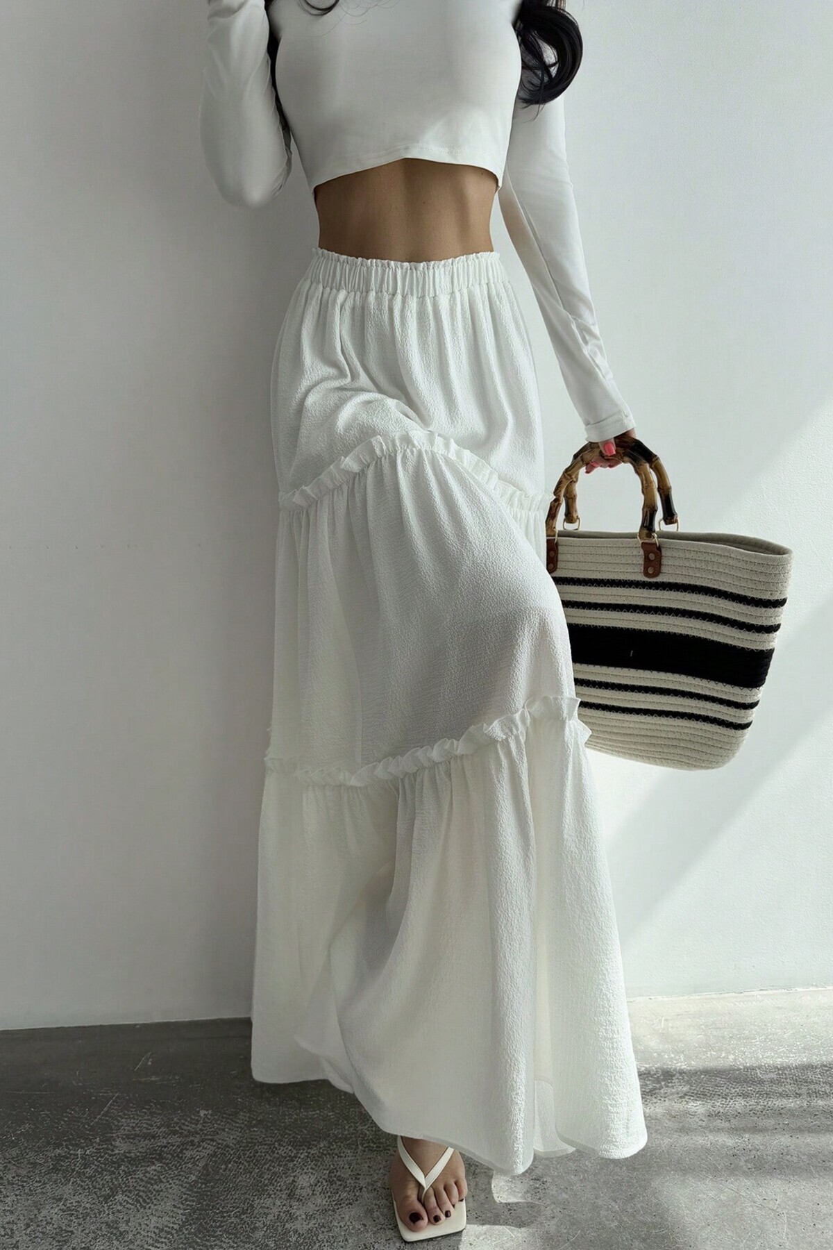 Kadın Beyaz Pileli Beli Lastikli Katlı Maxi Boy Etek Kadın Beyaz Pileli Beli Lastikli Katlı Maxi Boy Etek pilelietekmaxi XL
