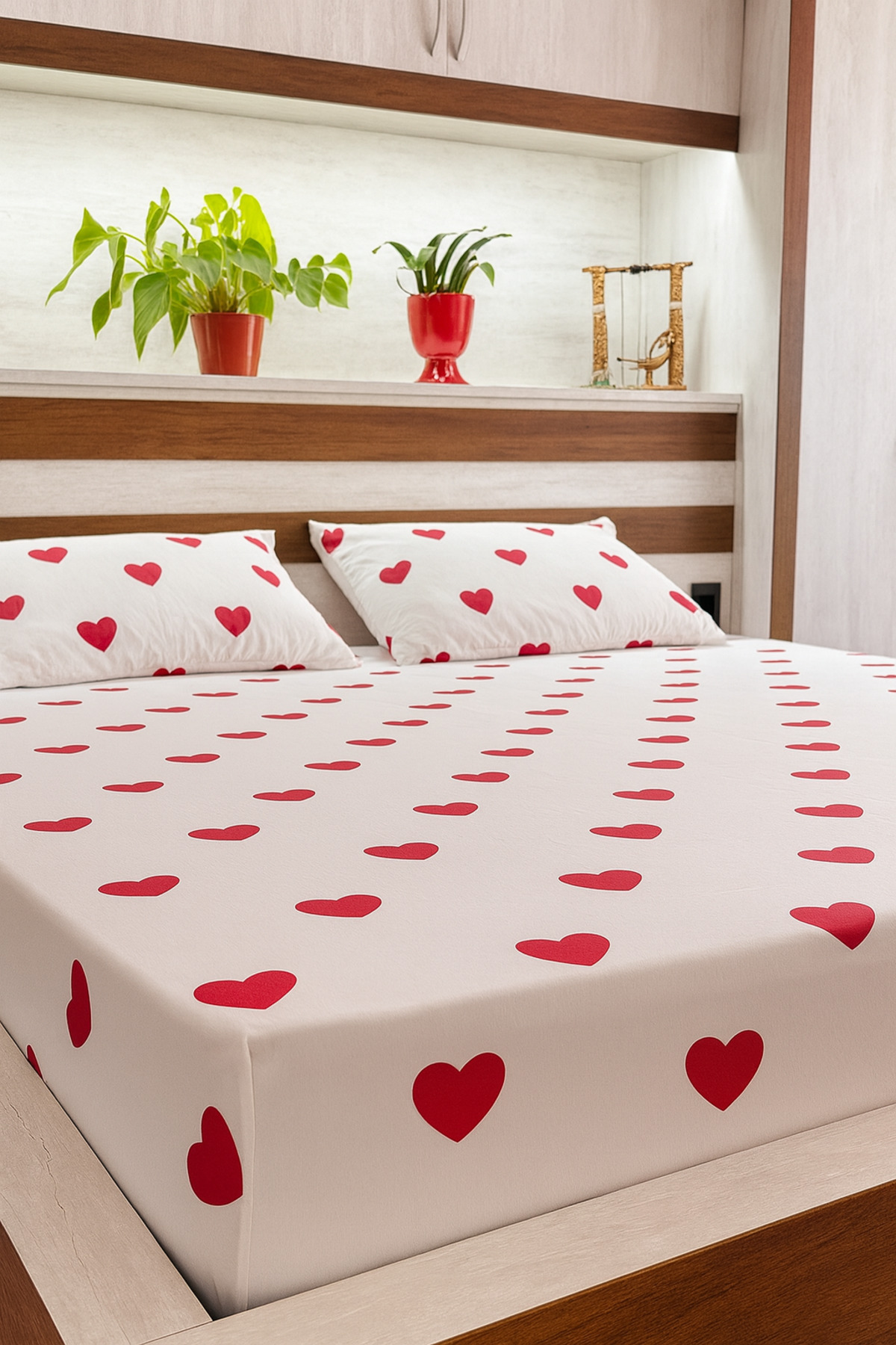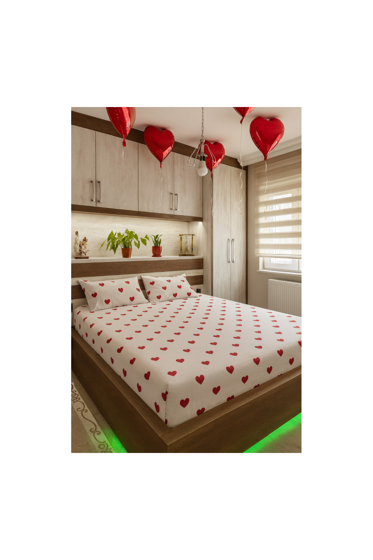 Çift Kişilik Battal Boy Pamuklu Lastikli Çarşaf Takımı Klasik Kırmızı Kalp Desen Çift Kişilik Battal Boy Pamuklu Lastikli Çarşaf Takımı Klasik Kırmızı Kalp Desen kllop445 180 x 200