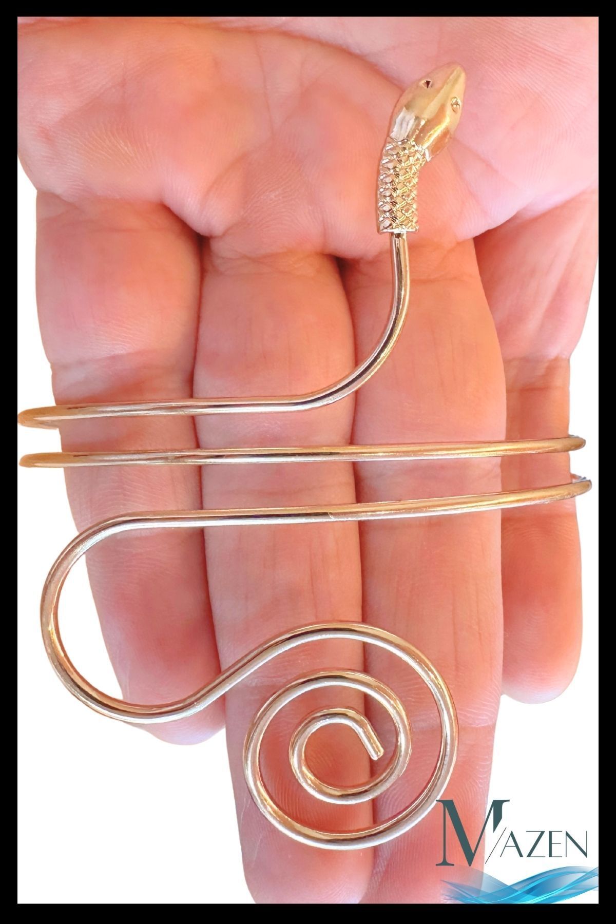 Yılan Figürlü Kadın Pazu Bilekliği | Ayarlanabilir Spiral Kol Aksesuarı | Şık Metal Model pzmrc