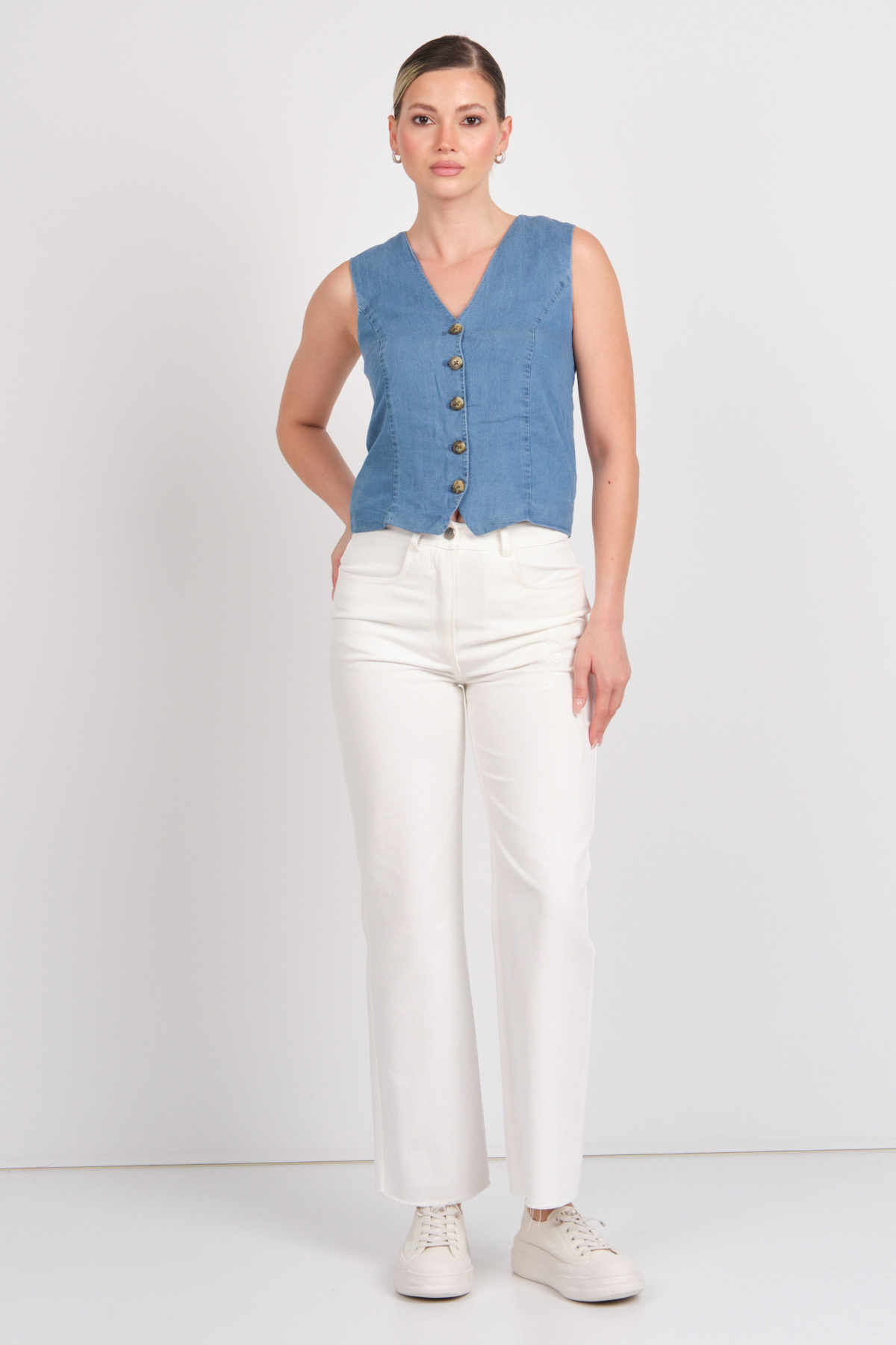 Kadın Onlırıs Kolsuz Düğmeli Jean Yelek 15337941 Indigo Kadın Onlırıs Kolsuz Düğmeli Jean Yelek 15337941 Indigo XL