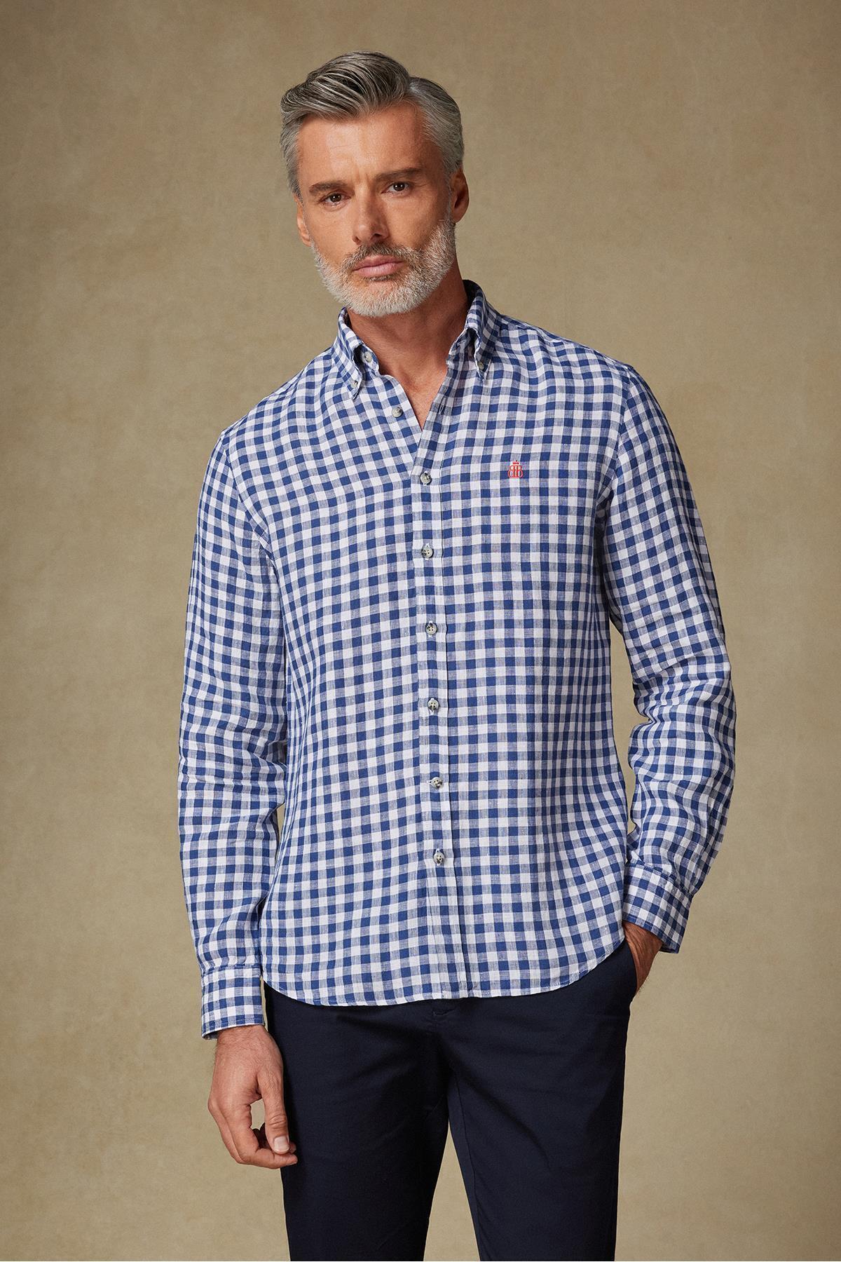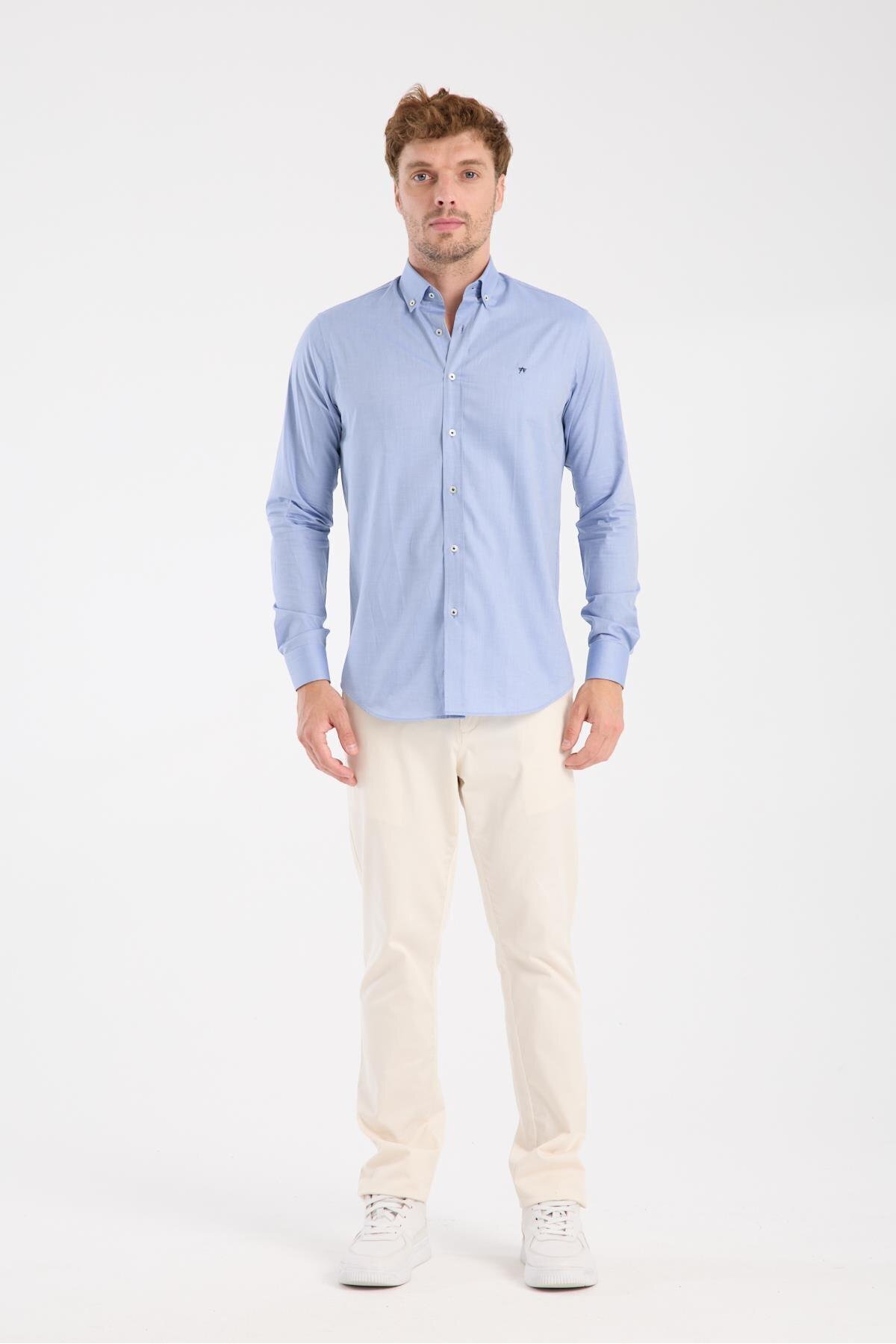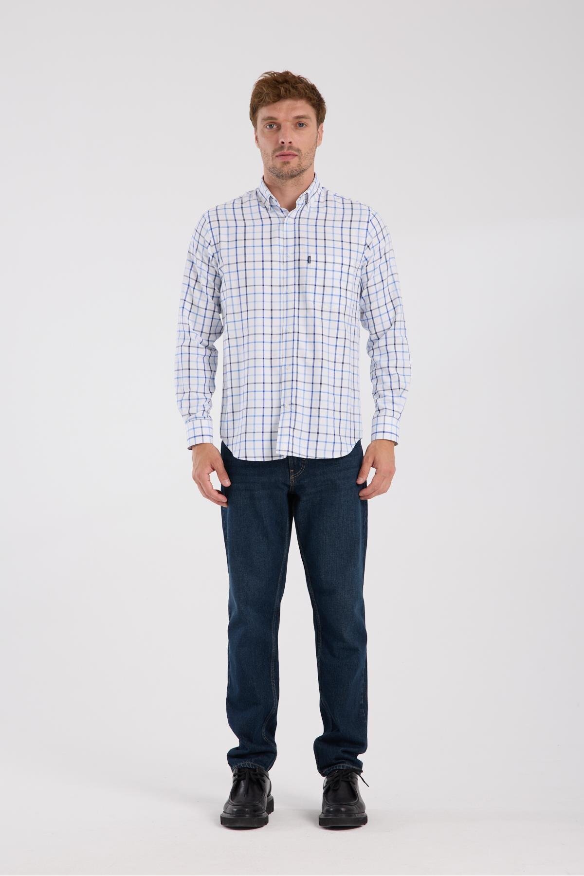 Lusso Twill Pamuklu Comfort Fit Lacivert Düğmeli Yaka Erkek Kareli Gömlek Lusso Twill Pamuklu Comfort Fit Lacivert Düğmeli Yaka Erkek Kareli Gömlek AMSH10062-001 3XL