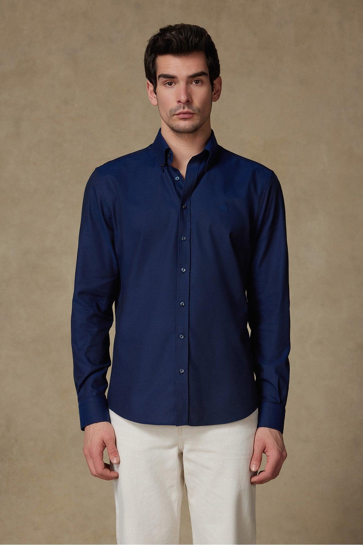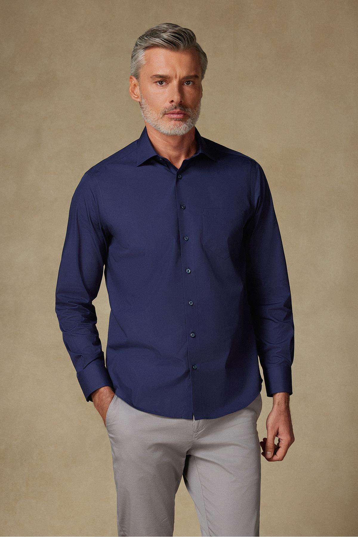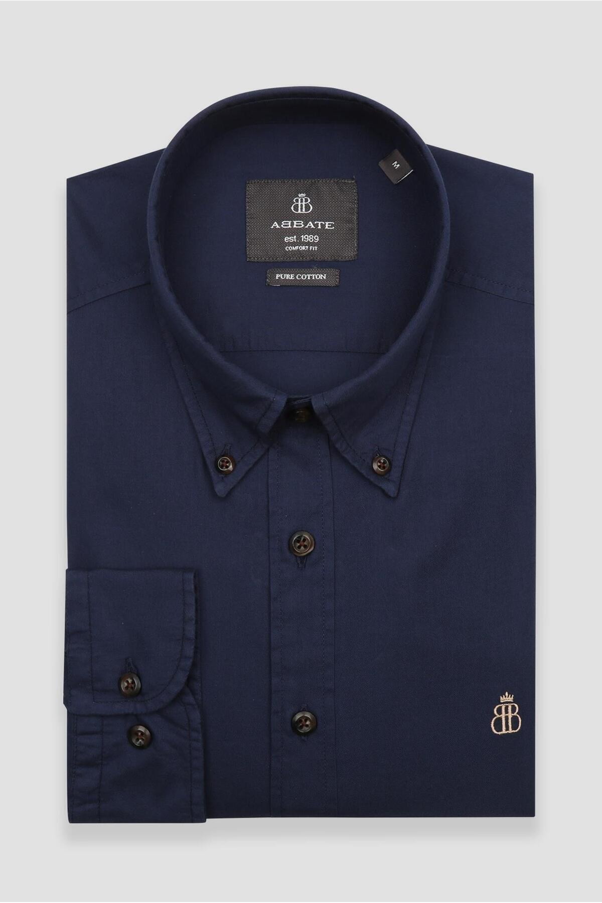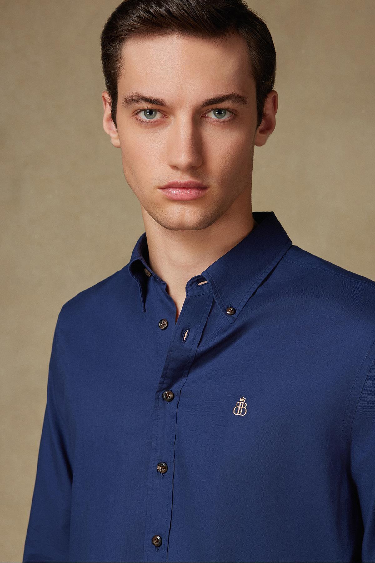 Mario Poplin Pamuklu Comfort Fit Lacivert Düğmeli Yaka Erkek Düz Gömlek Mario Poplin Pamuklu Comfort Fit Lacivert Düğmeli Yaka Erkek Düz Gömlek AMSH10053-001 3XL