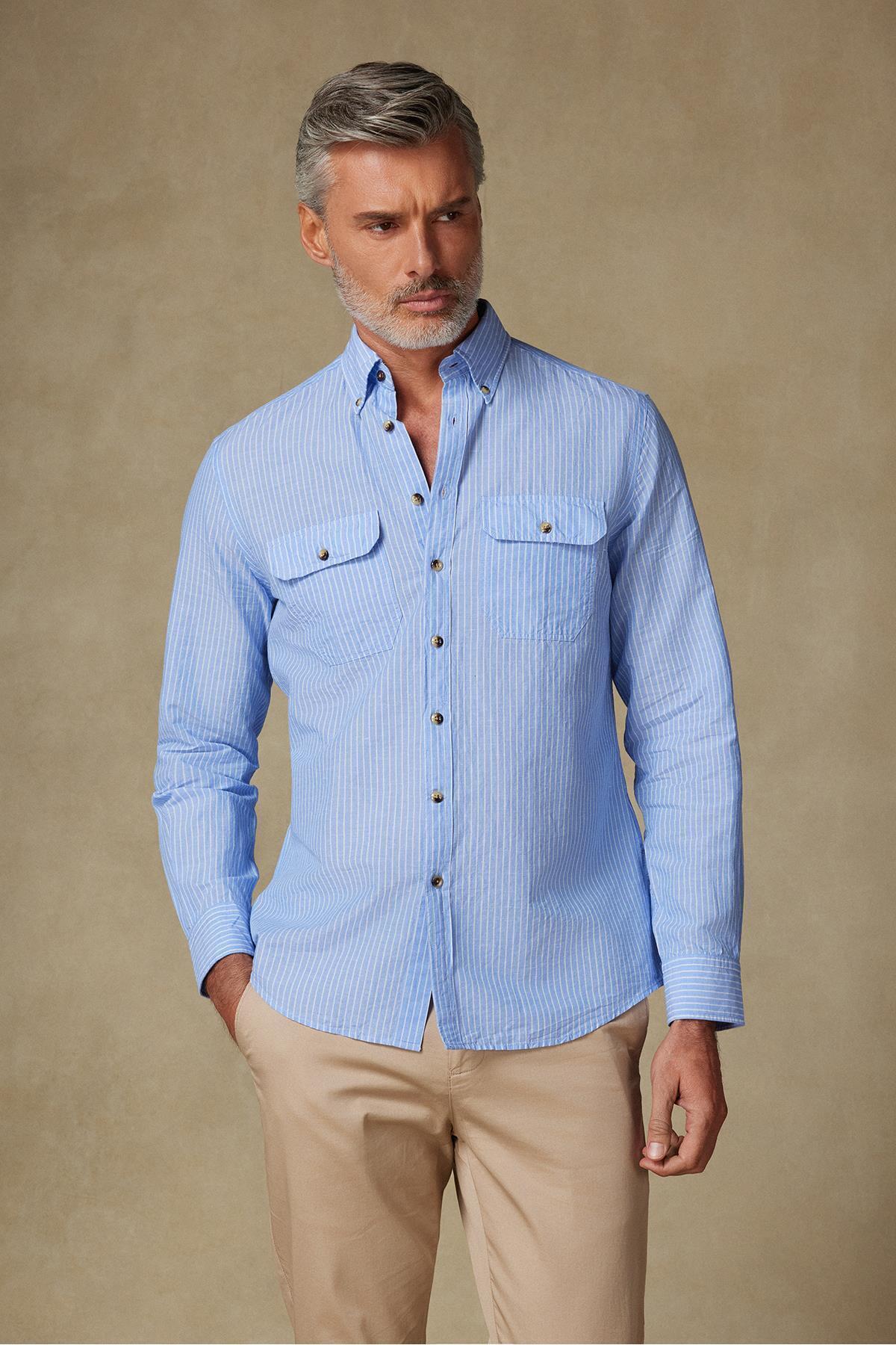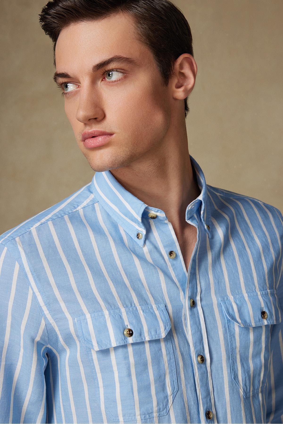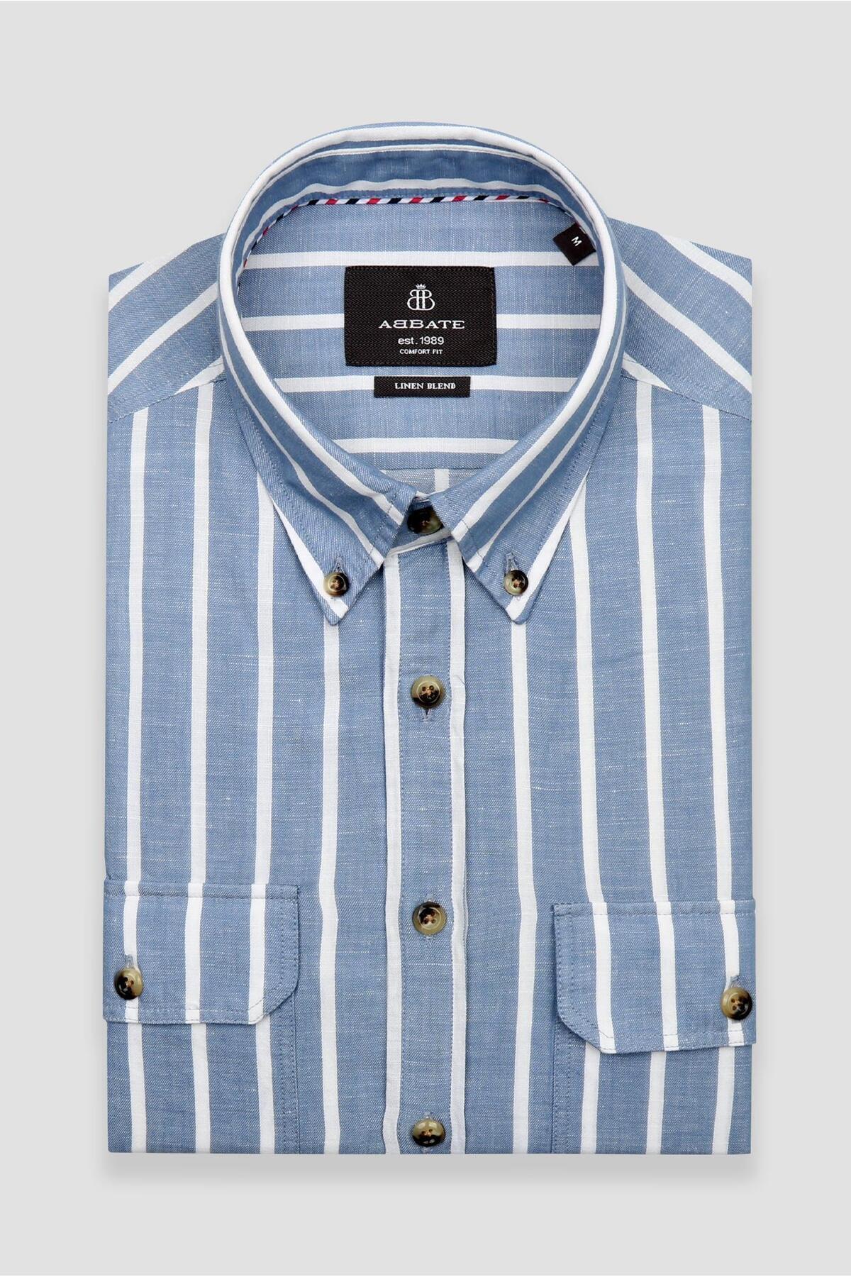 Alba Keten Pamuk Keten Karışımlı Comfort Fit Koyu Mavi Düğmeli Yaka Erkek Çizgili Gömlek Alba Keten Pamuk Keten Karışımlı Comfort Fit Koyu Mavi Düğmeli Yaka Erkek Çizgili Gömlek AMSH10052-001 3XL