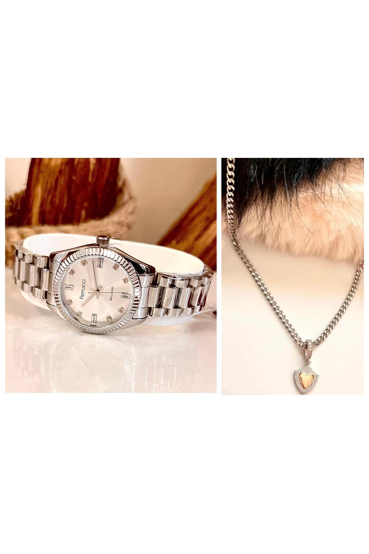 Yeni Sezon Çelik Şık Kadın Kol Saati+Çelik Kolye Hediye Yeni Sezon Çelik Şık Kadın Kol Saati+Çelik Kolye Hediye FC-71121-SF04 تک سایز