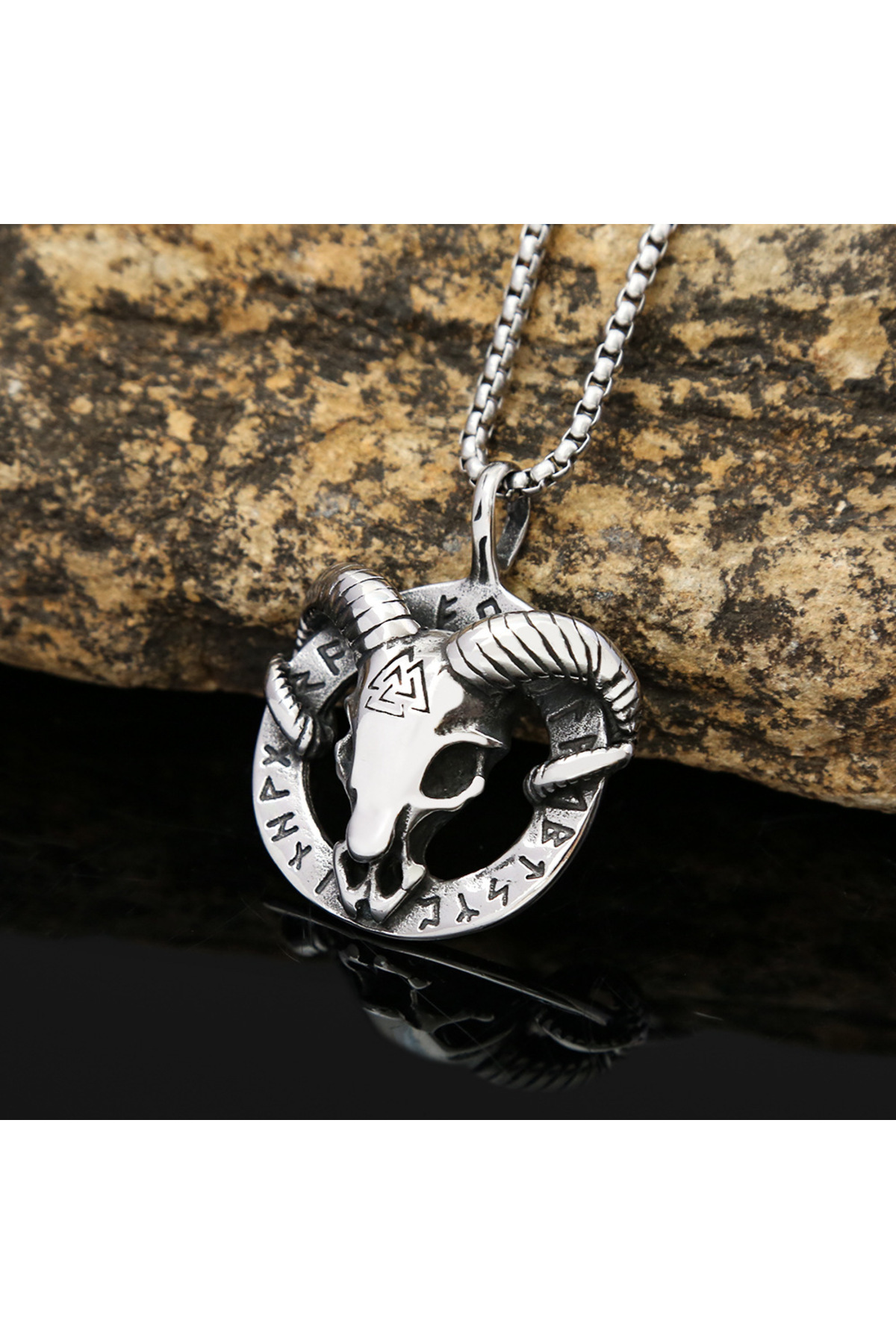 Gotik Kurukafa & Ejderha & Pentagram Kararmaz & Paslanmaz Vintage 316L Çelik Kolye Gotik Kurukafa & Ejderha & Pentagram Kararmaz & Paslanmaz Vintage 316L Çelik Kolye NSS00001532 60 cm