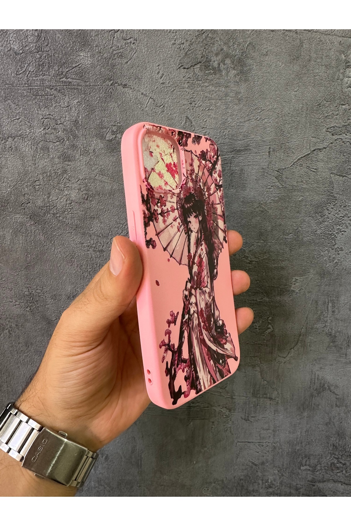 İPHONE 13-14 Uyumlu Japon Kimonolu Şemsiyeli Kız Desenli Pembe Kılıf İPHONE 13-14 Uyumlu Japon Kimonolu Şemsiyeli Kız Desenli Pembe Kılıf ACS-1314 تک سایز