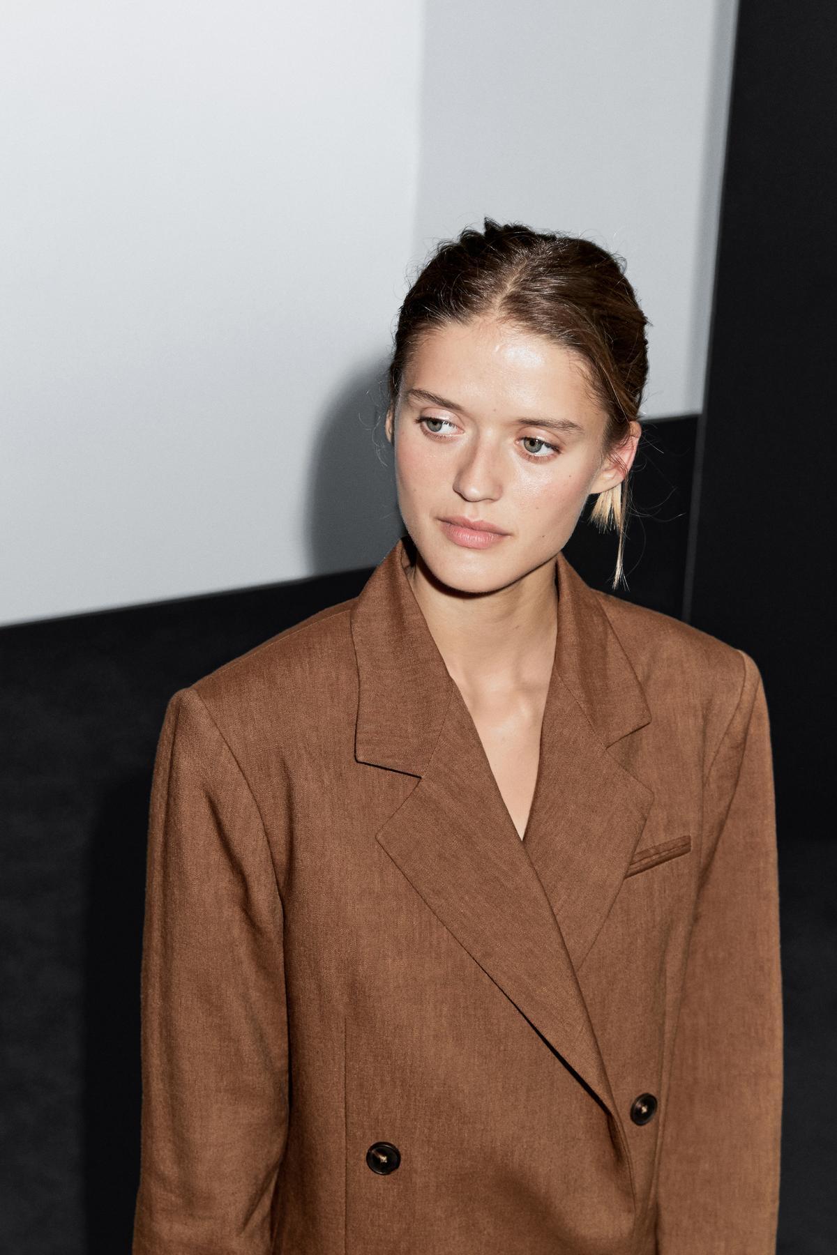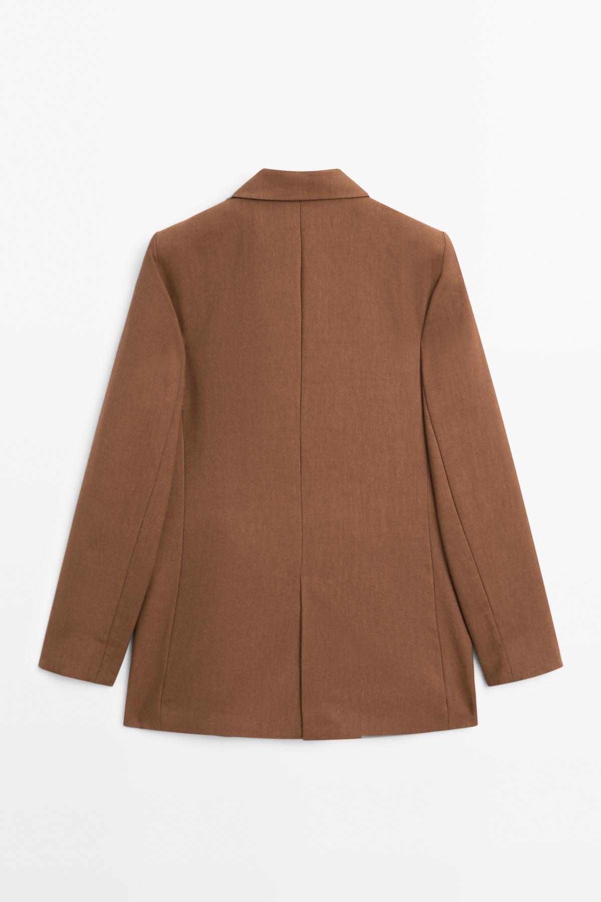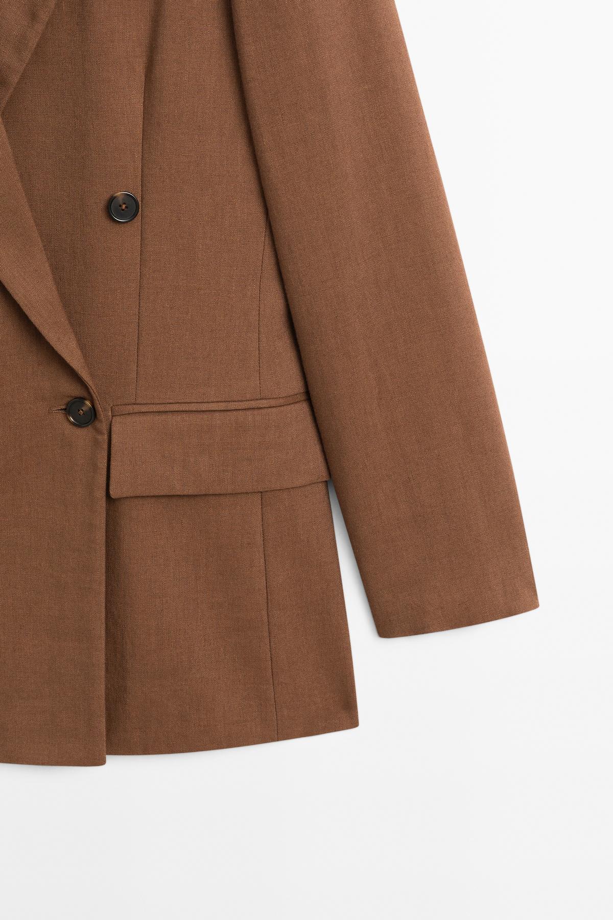 Keten karışımlı kruvaze blazer Keten karışımlı kruvaze blazer 00110779206016583 42