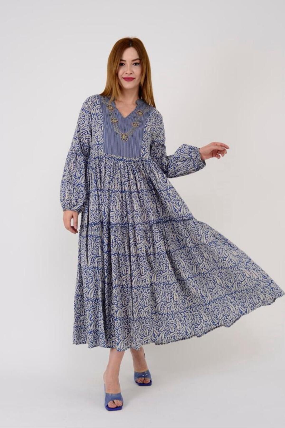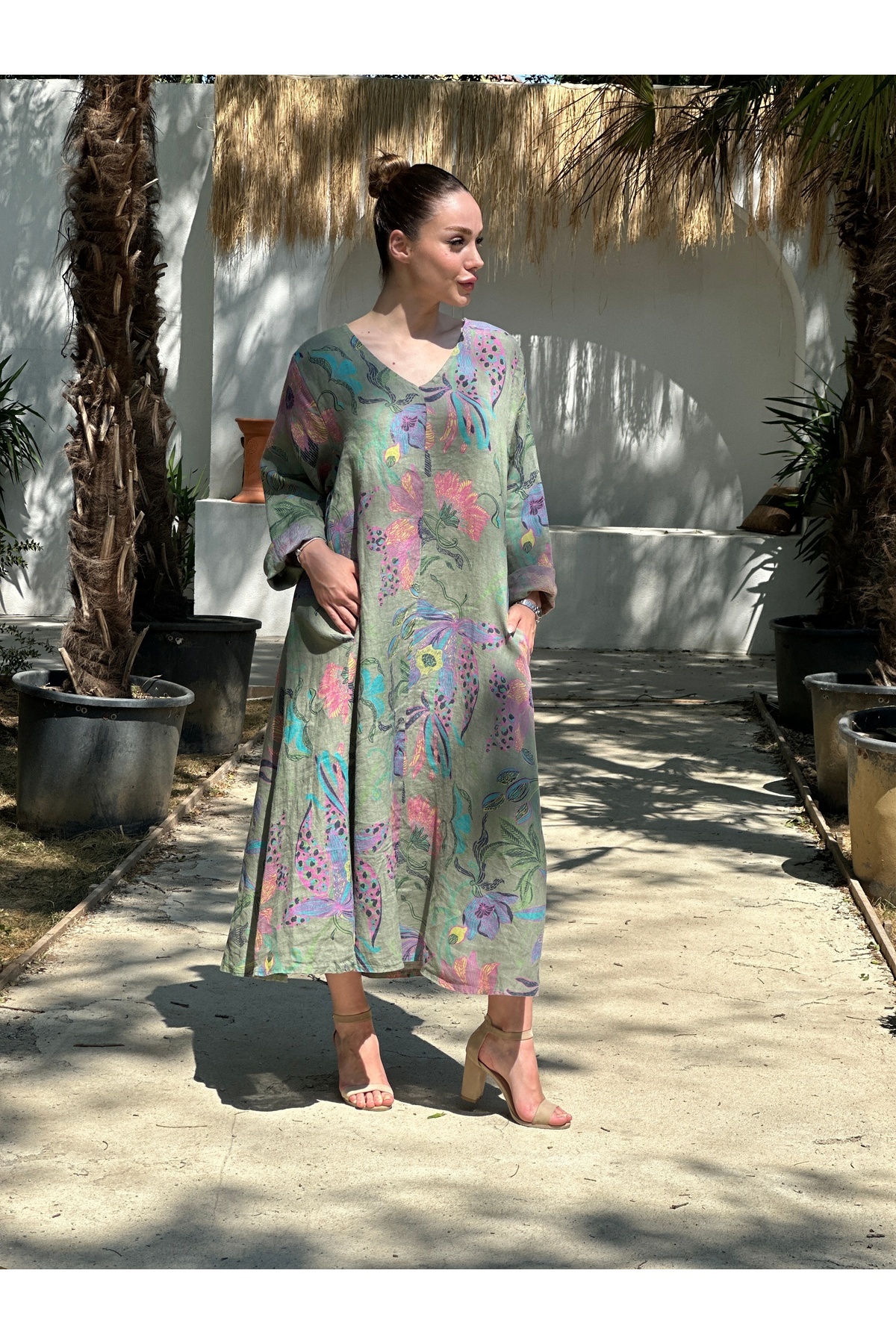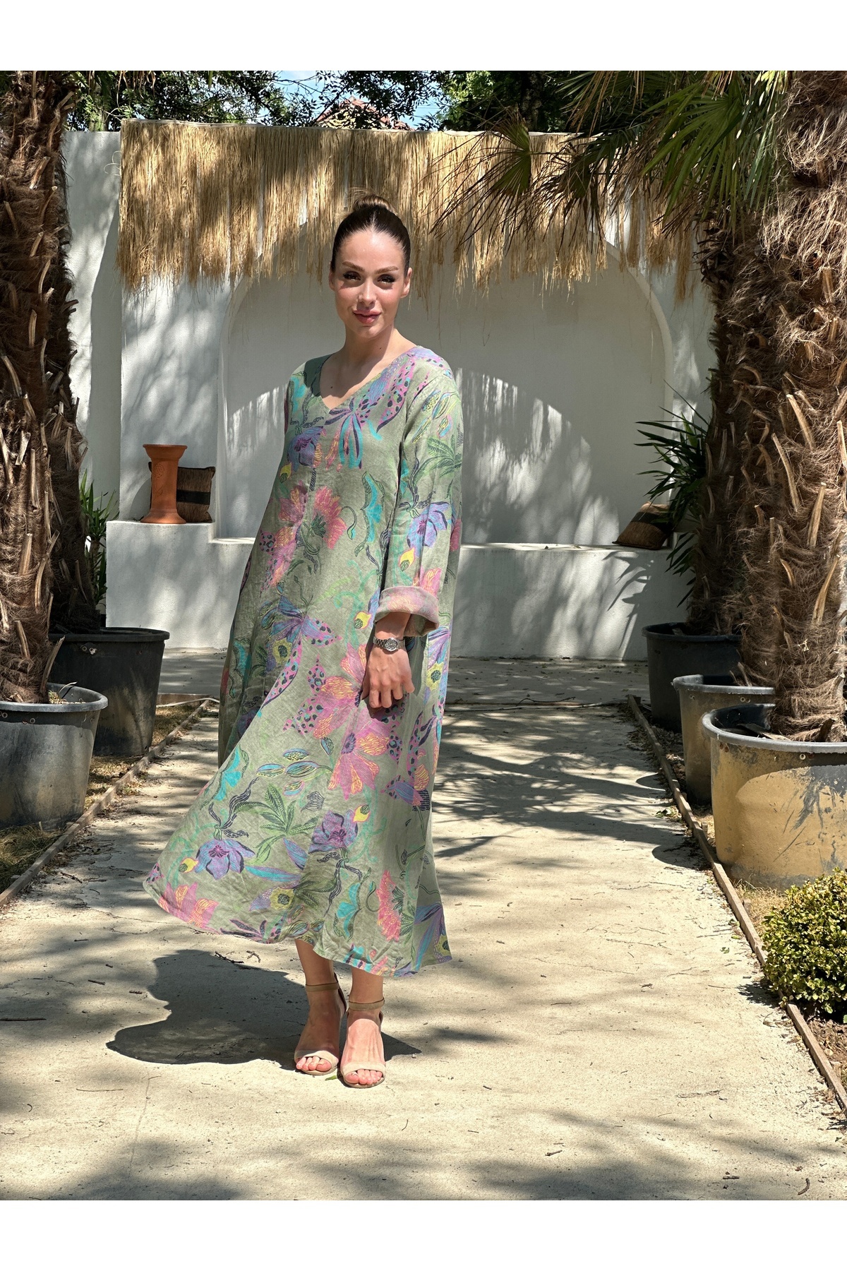 YAZLIK PAMUK KETEN KENDİNDEN DESENLİ OVERSİZE SALAŞ ELBİSE YAZLIK PAMUK KETEN KENDİNDEN DESENLİ OVERSİZE SALAŞ ELBİSE KTN02 XLSTD