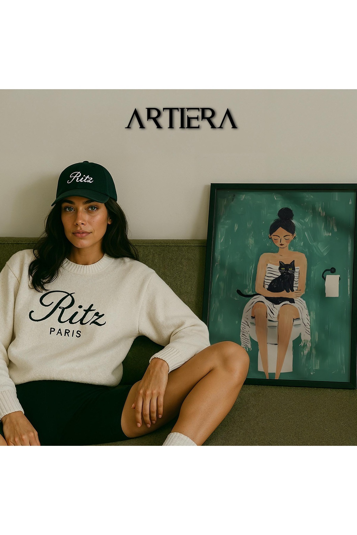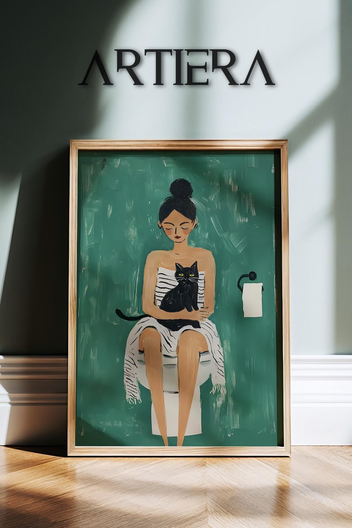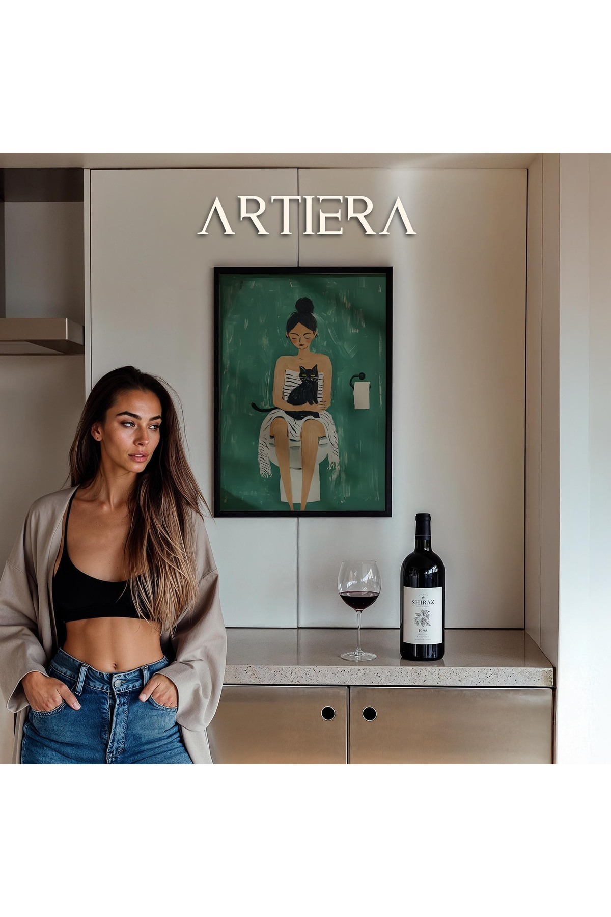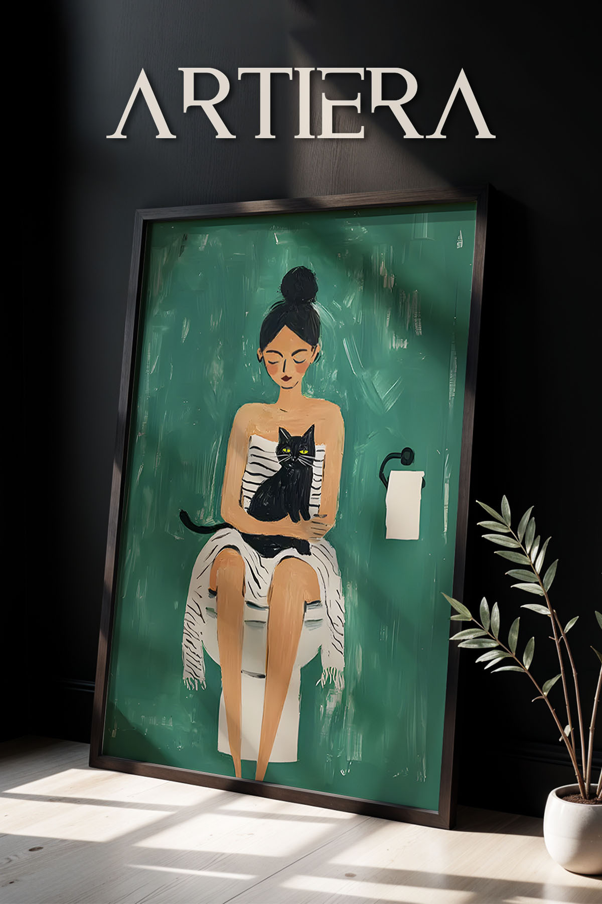 Tuvalette Kadın ve Kedi Soyut Banyo Ahşap Çerçeveli Duvar Tablosu Tuvalette Kadın ve Kedi Soyut Banyo Ahşap Çerçeveli Duvar Tablosu NOIR-256 50 x 70