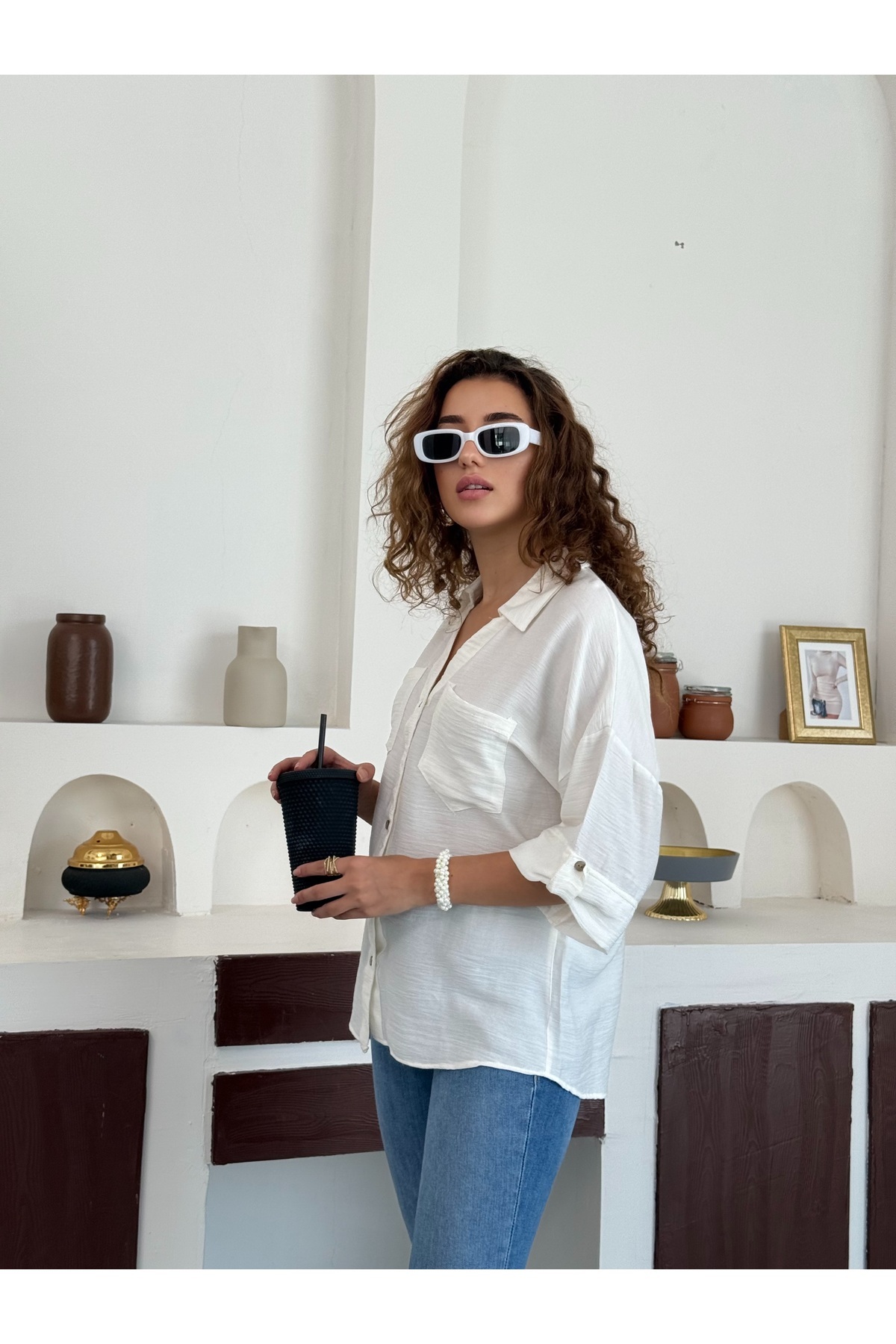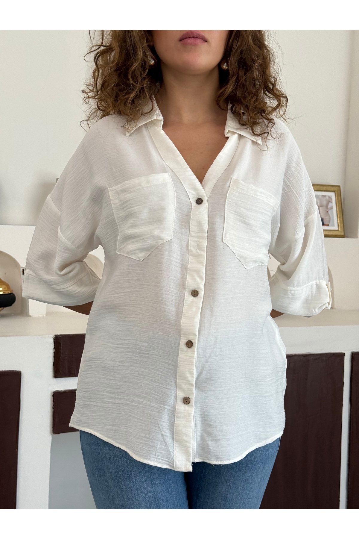 Kısa Kol Çift Cep Kadın Gömlek Model Kodu:605 Kısa Kol Çift Cep Kadın Gömlek Model Kodu:605 L