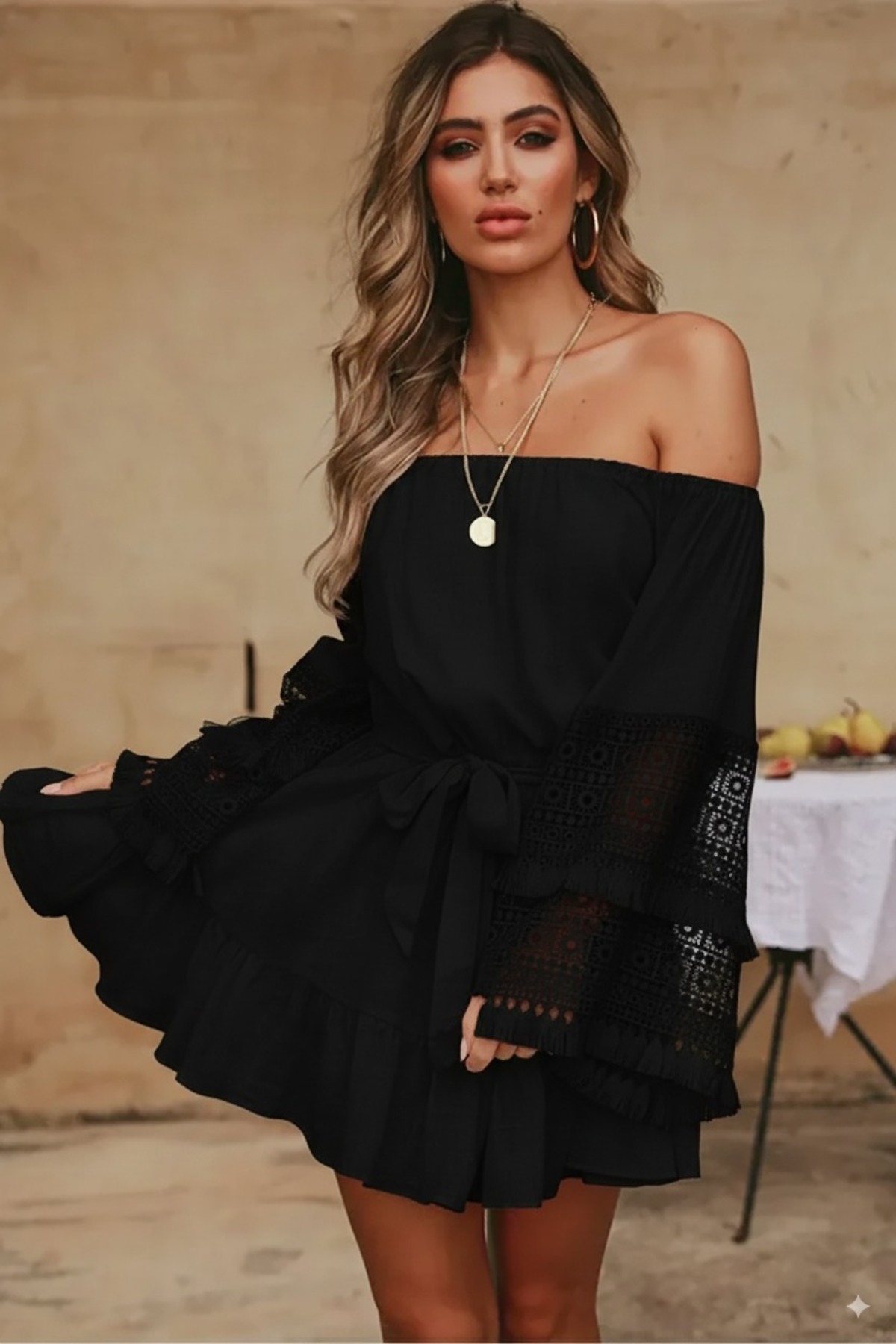 Ekstra Uzun Kollu Çift Kat Dantel Işleme Madonna Yaka Düşük Omuz Kemerli Doğal Bohem Yazlık Elbise Ekstra Uzun Kollu Çift Kat Dantel Işleme Madonna Yaka Düşük Omuz Kemerli Doğal Bohem Yazlık Elbise FC6003 40