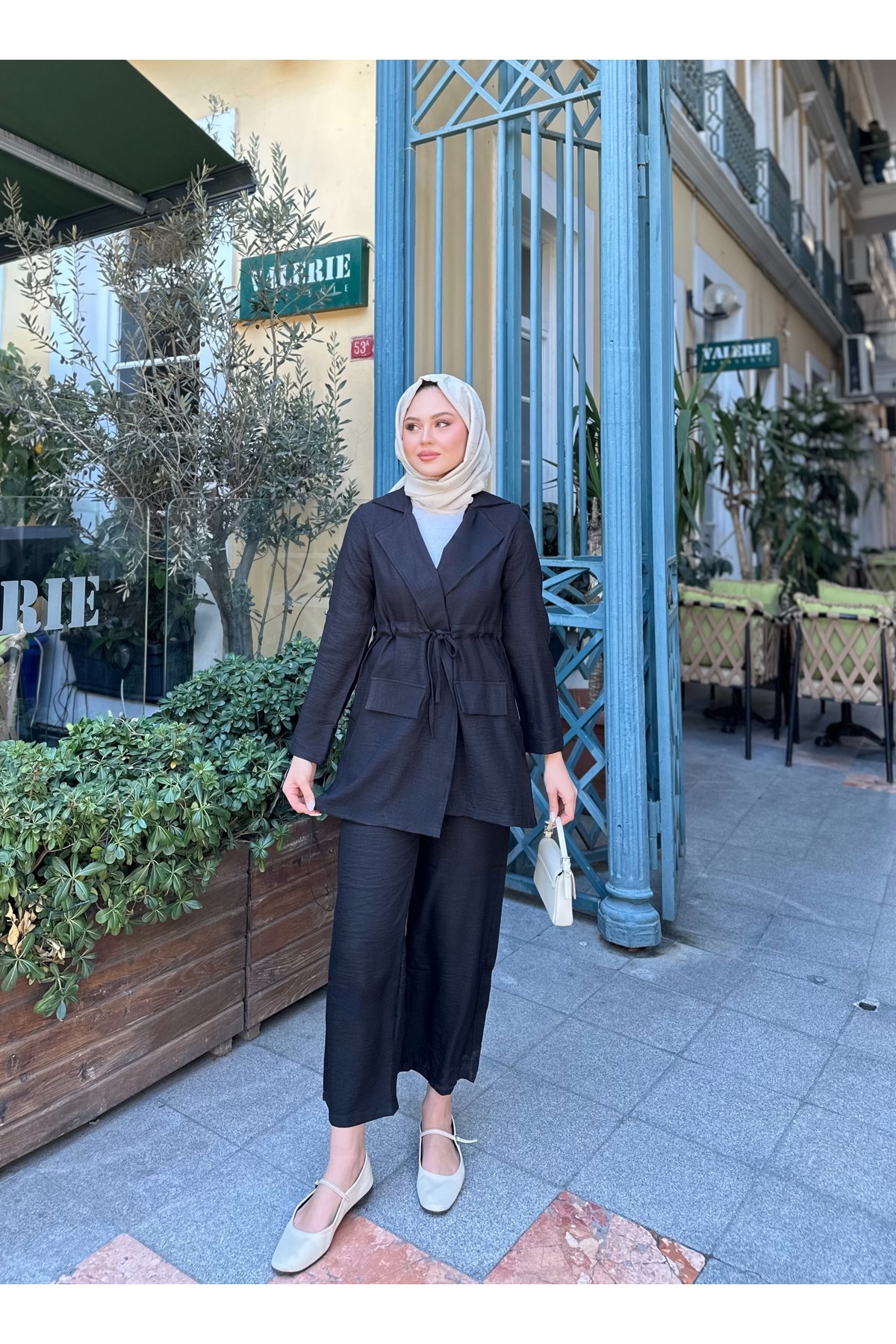 Kadın Bağcıklı Keten Ceket Pantolon Takım Kadın Bağcıklı Keten Ceket Pantolon Takım BGKTCKTK23 2XL